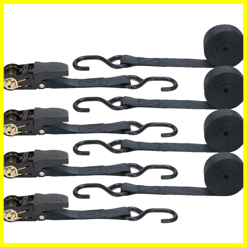 ラチェットベルト タイダウンベルト 2m 幅2.5cm 4本セット 荷締めベルト 破断荷重800kg/本 最大使用荷重225kg ラッシンググベルト タイダウン 引越し 運搬用 ナイロン オートバイ対応 ブラック