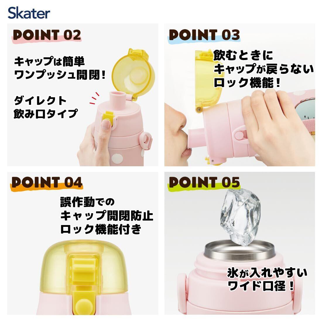 スケーター(Skater) 子供用 ステンレス 水筒 直飲み 480ml すみっコぐらし 女の子 3D立体プリント 子供に優しい軽量タイプ 保冷専用 waterbottle スポーツボトル キッズ こども 水瓶 SDPV5-A