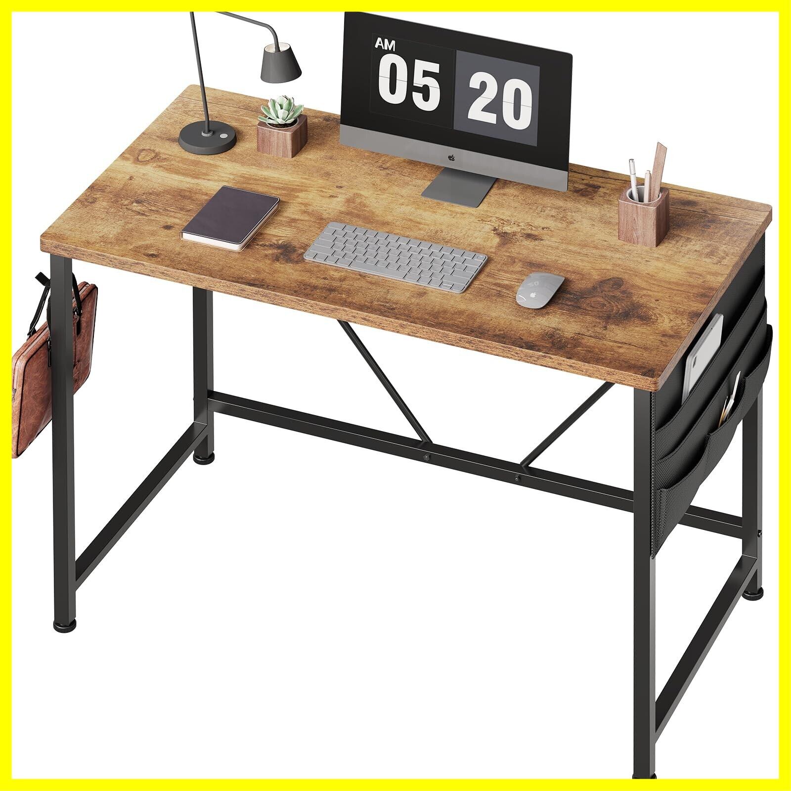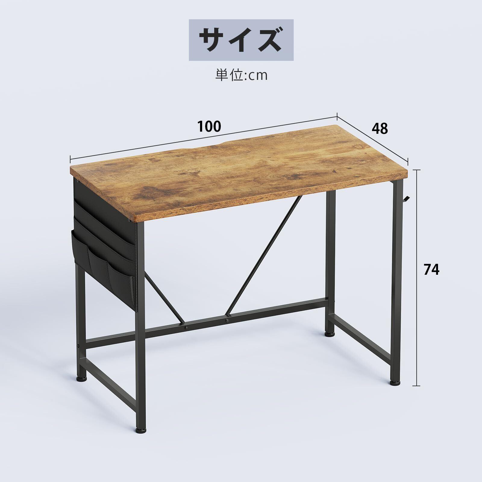 パソコンデスク pc 幅100*奥行48cm つくえ シンプル 収納袋付き勉強机 フック付き学習机 オフィス 組立簡単 在宅 テレワーク ビンテージ