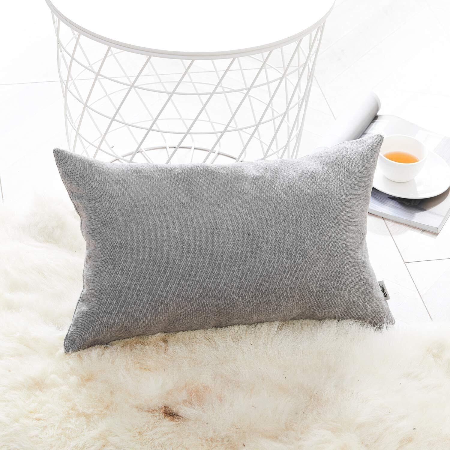 Topfinel クッションカバー 長方形 リネンっぽい 30×50cm 北欧 おしゃれ 綿麻 無地 ソファ背当て 装飾枕カバー グレー 2枚(全10色)