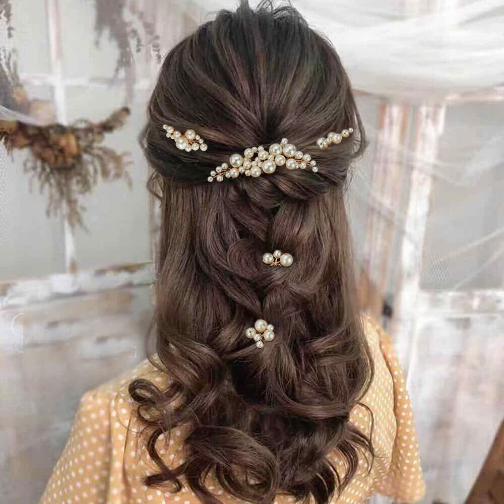 ヘアアクセサリー パール髪飾り 5本セット 3種類 ヘアピン コーム Uピン ヘアクリップ ウェディング 髪飾りフォーマル 結婚式/ウェディング/パーティー/子供 卒業式/入学式/花嫁などの髪飾り用