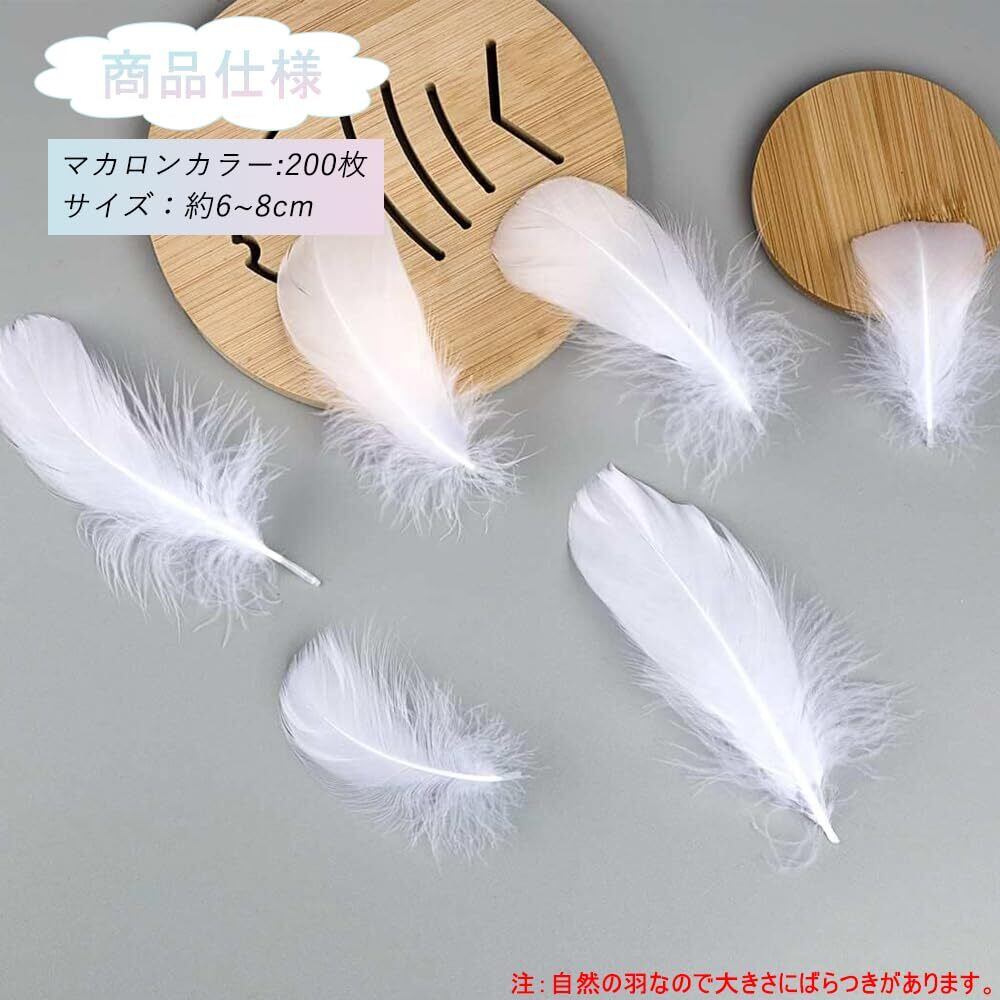 商品仕様:200枚セットです。(注:自然の羽なので大きさにばらつきがあります。)