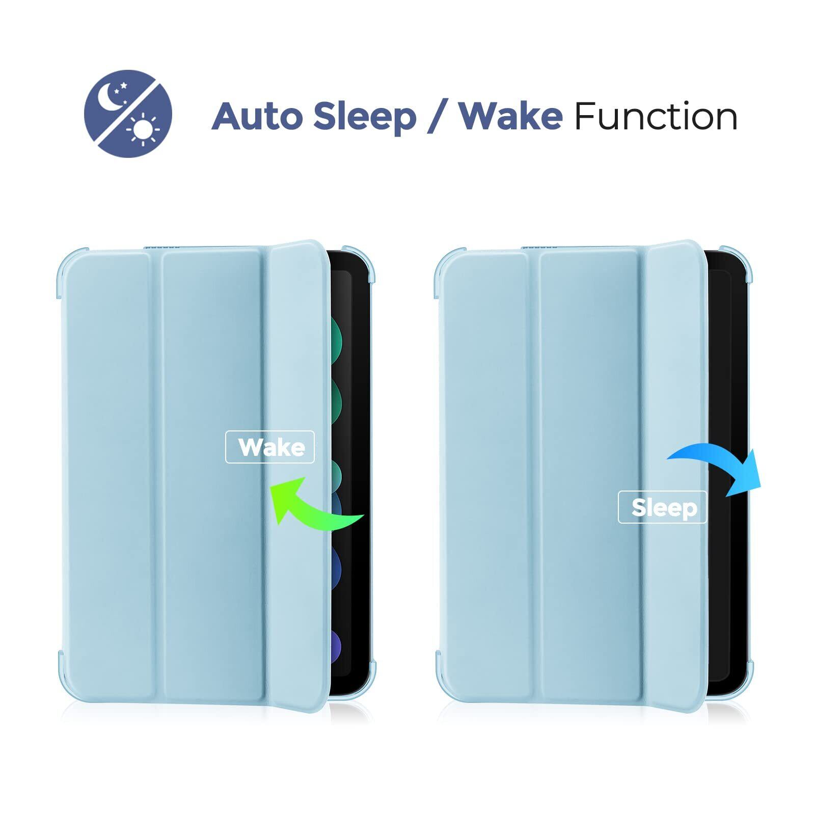 ProCase iPad Mini A17 Pro 第7世代 2024 Mini6 ケース 2021 8.3インチ、スリム 三つ折りスタンド ハードバックカバー、適用機種:iPad Mini A17 Pro 第7世代 2024、Mini 6世代 2021 -スカイブルー
