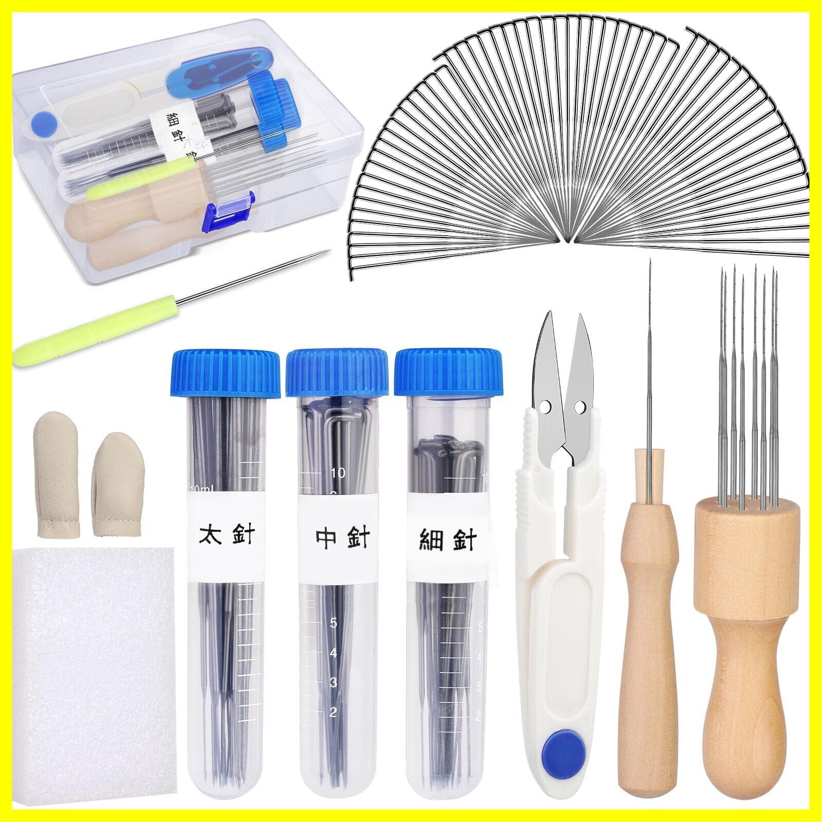フェルトニードルキット: 3種類のサイズの羊毛フェルト針:20×9センチ、20×8.6センチ、20×7.8センチ。要件に応じたさまざまなオプション。太い針と仕上げ用の細い針がフェルトニードルセットに入っているので、細かい作品作りにも対応できます。