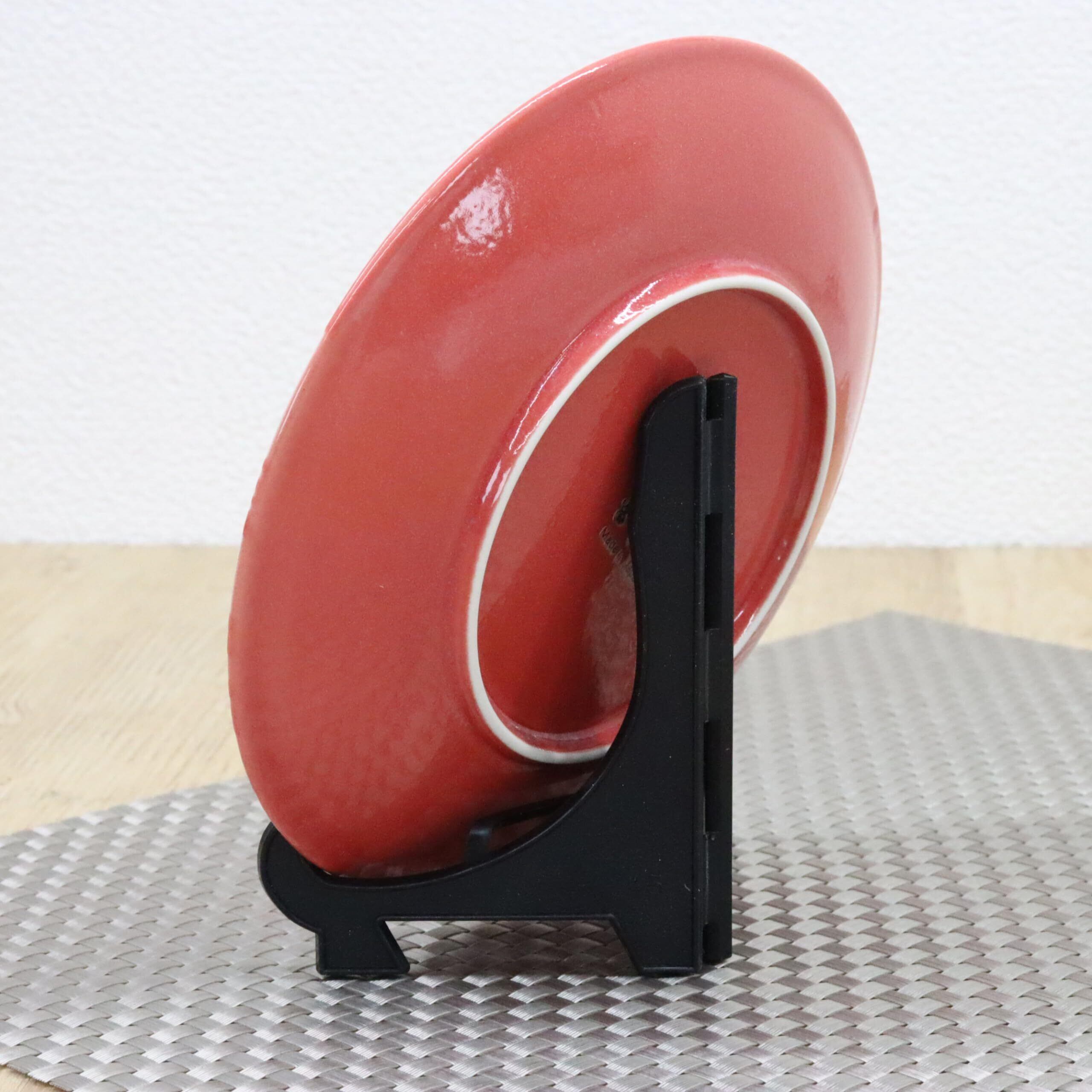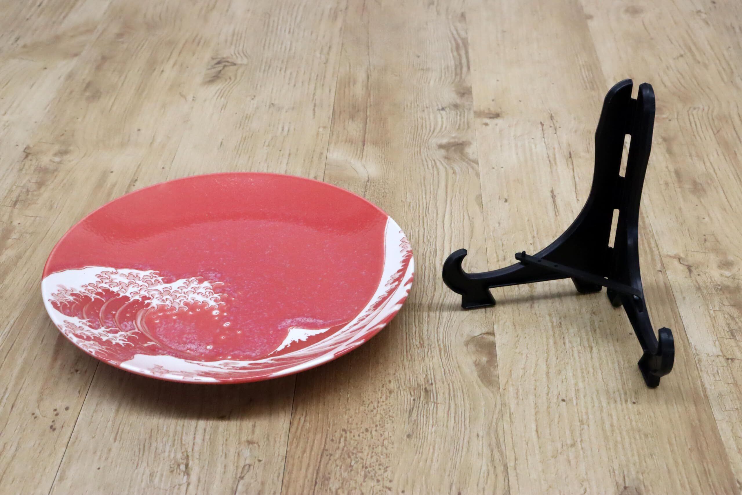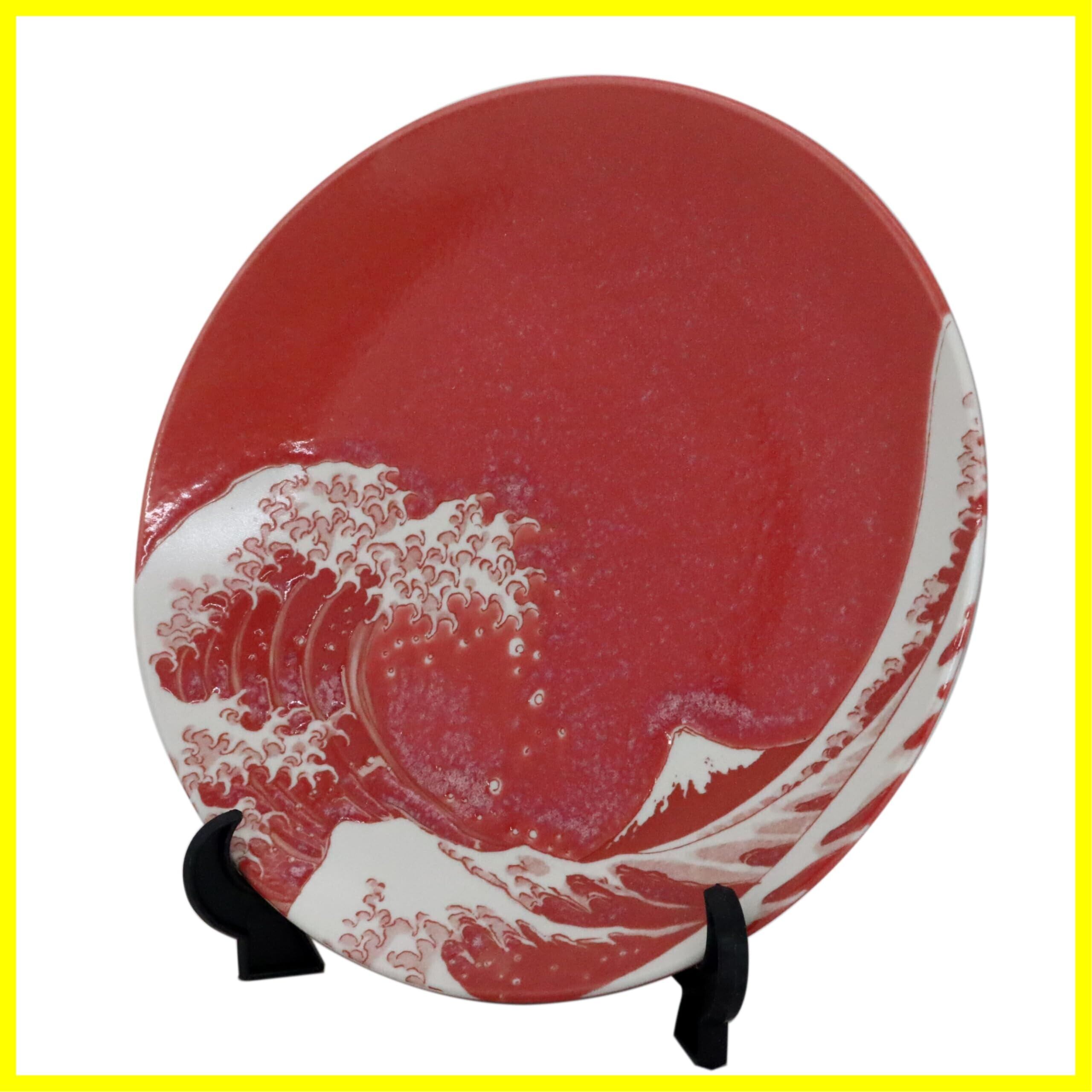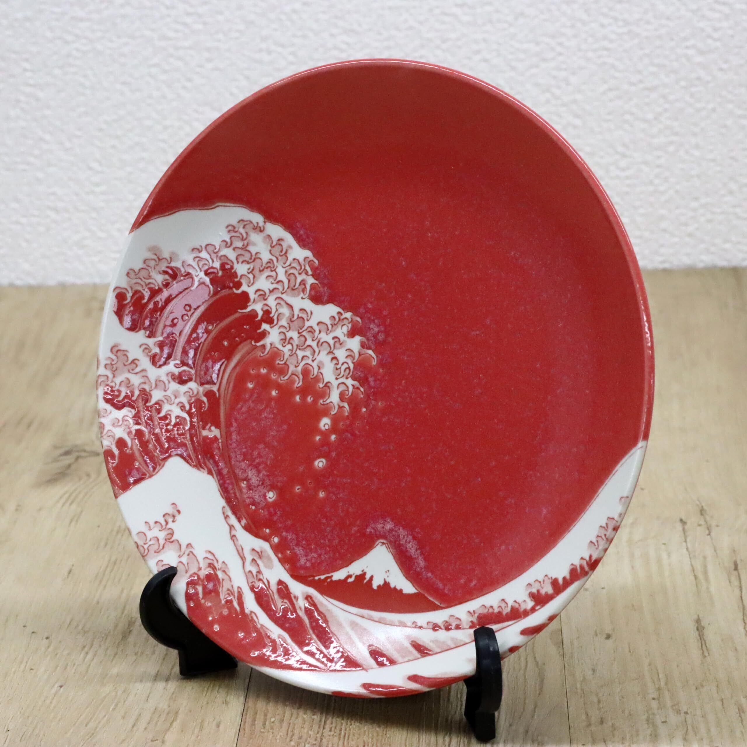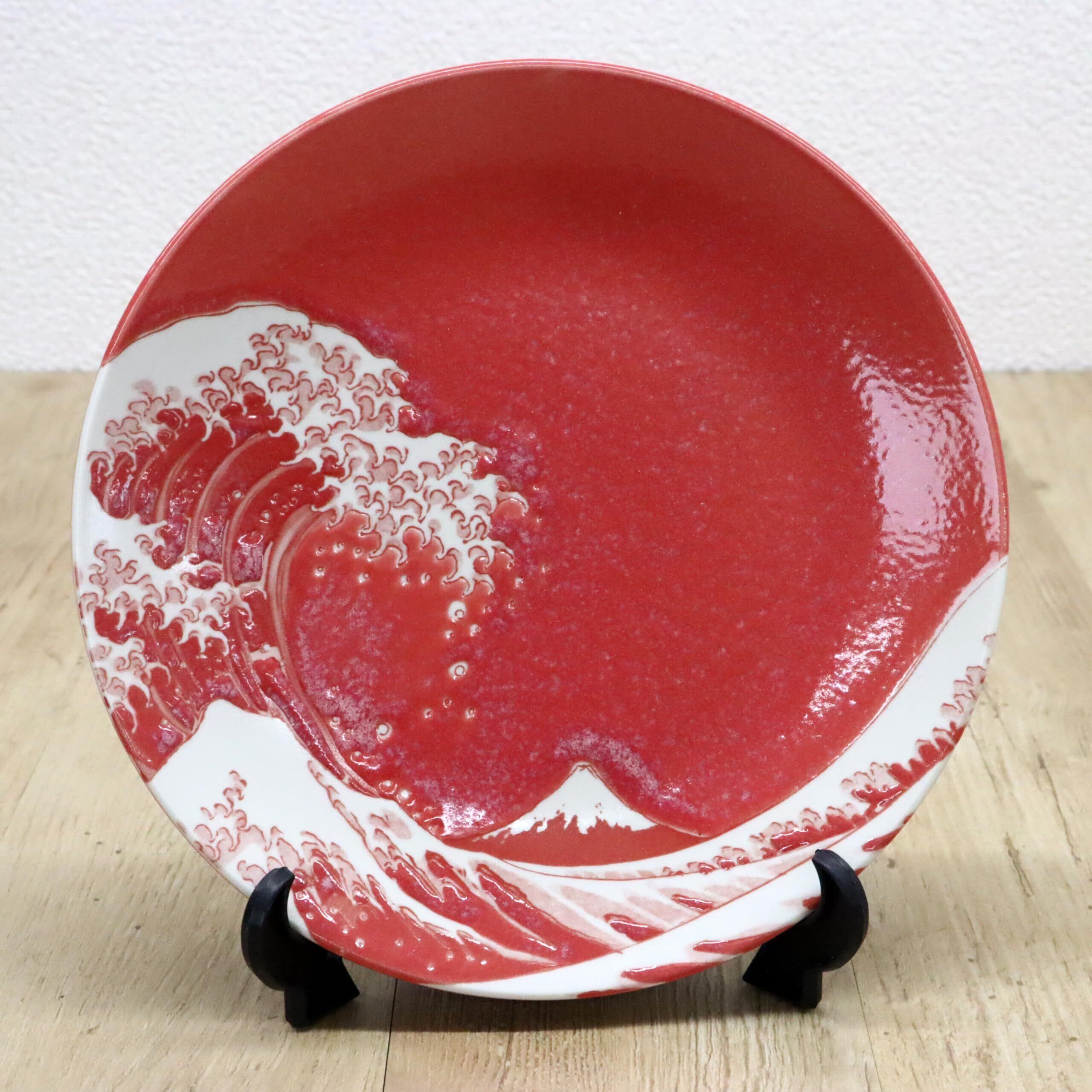 日本のお土産 絵皿 波富士 富士山 赤(額立付)