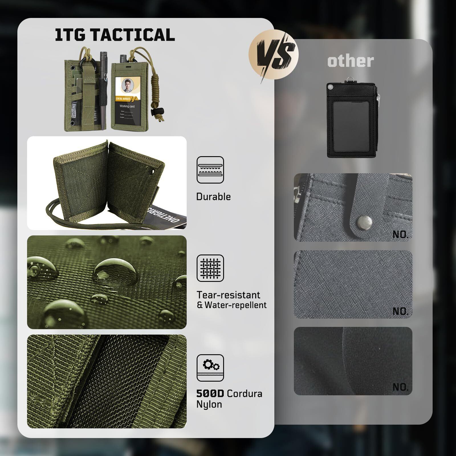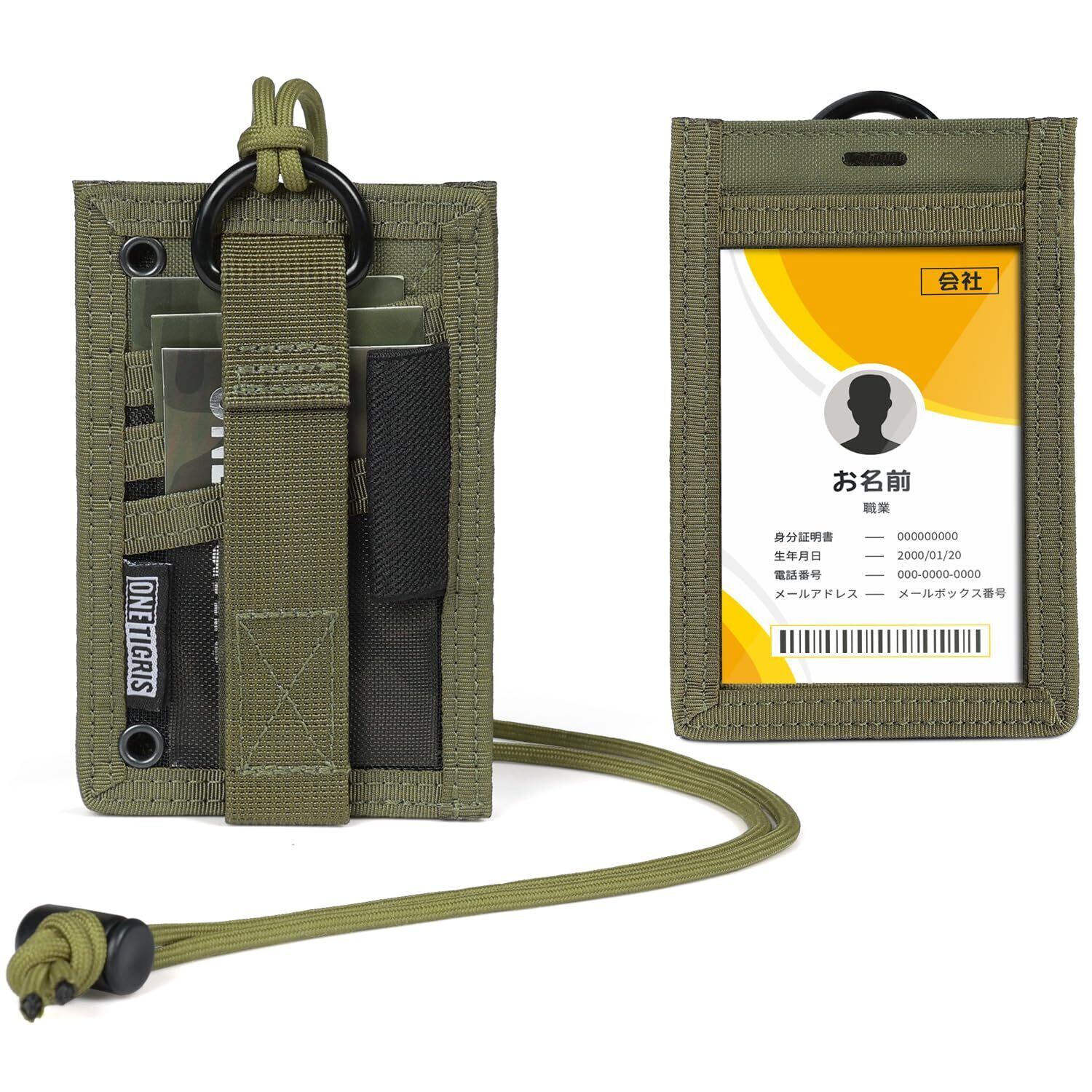 OneTigris ID カードホルダー ペンホルダー付き 首掛け カードケース ミリタリー風 仕事・通学・アウトドア タクティカル 用 耐久 定期入れ ネームホルダー 社員証ケース 横縦両用 (グリン)