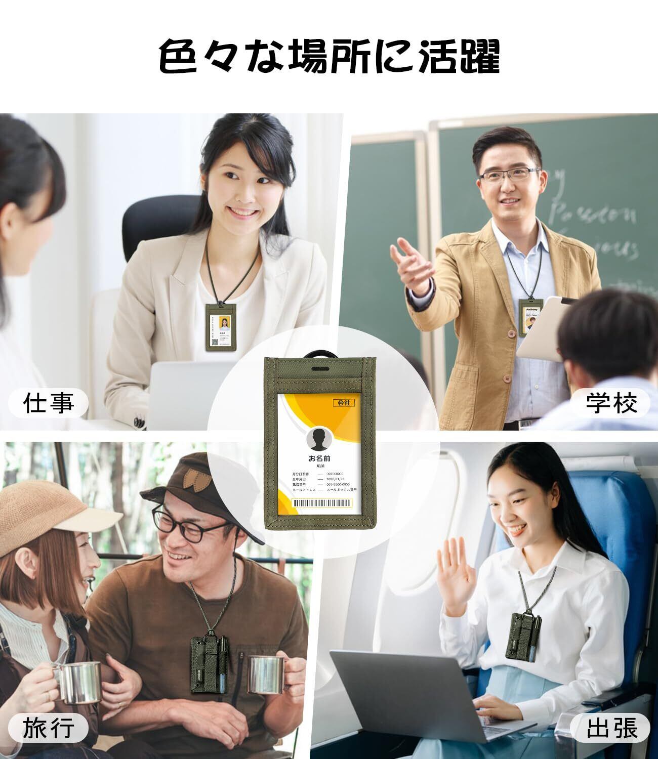 「便利なカードホルダー」このidカードホルダーは縦式と横式も両用でき、名刺や社員証の向きによって選ばれます。前と背面はマジックテープで連結されているので、取り外して使用可能、素早くスワイプできる干渉防止便利な定期入れです。