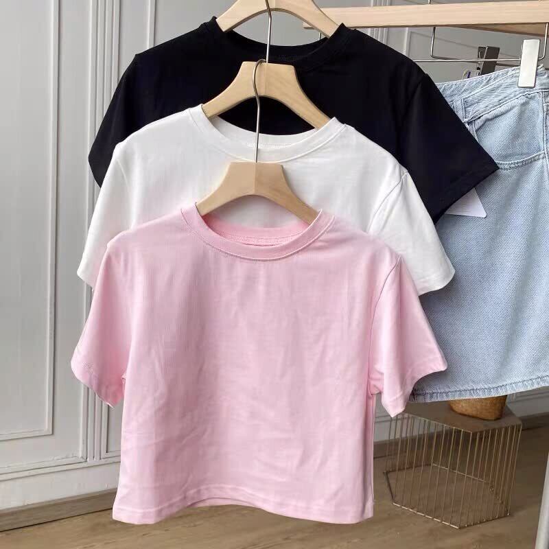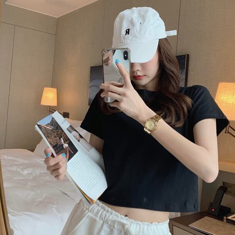 SEYIXU Tシャツ へそ出し レディース カットソー 半袖 ショート丈 Tシャツ ちびT 丸首 無地 クロップド トップス シンプル ダンス 着痩せ 半袖シャツ