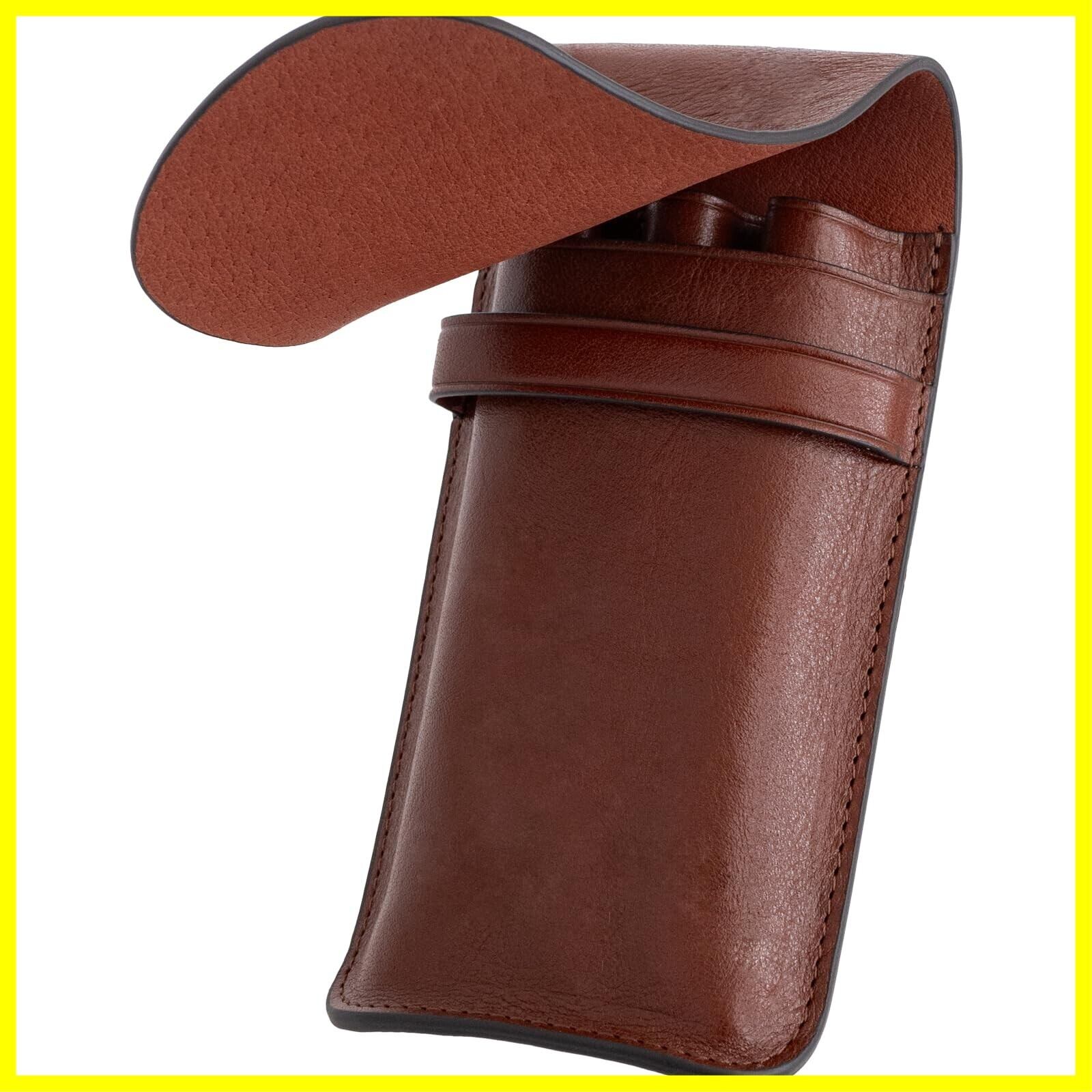 [Dom Teporna] 本革 ペンケース 3本 万年筆 シンプル おしゃれ イタリアンレザー コンパクト 筆箱 ペンホルダー 文房具 ダークブラウン/3本差し