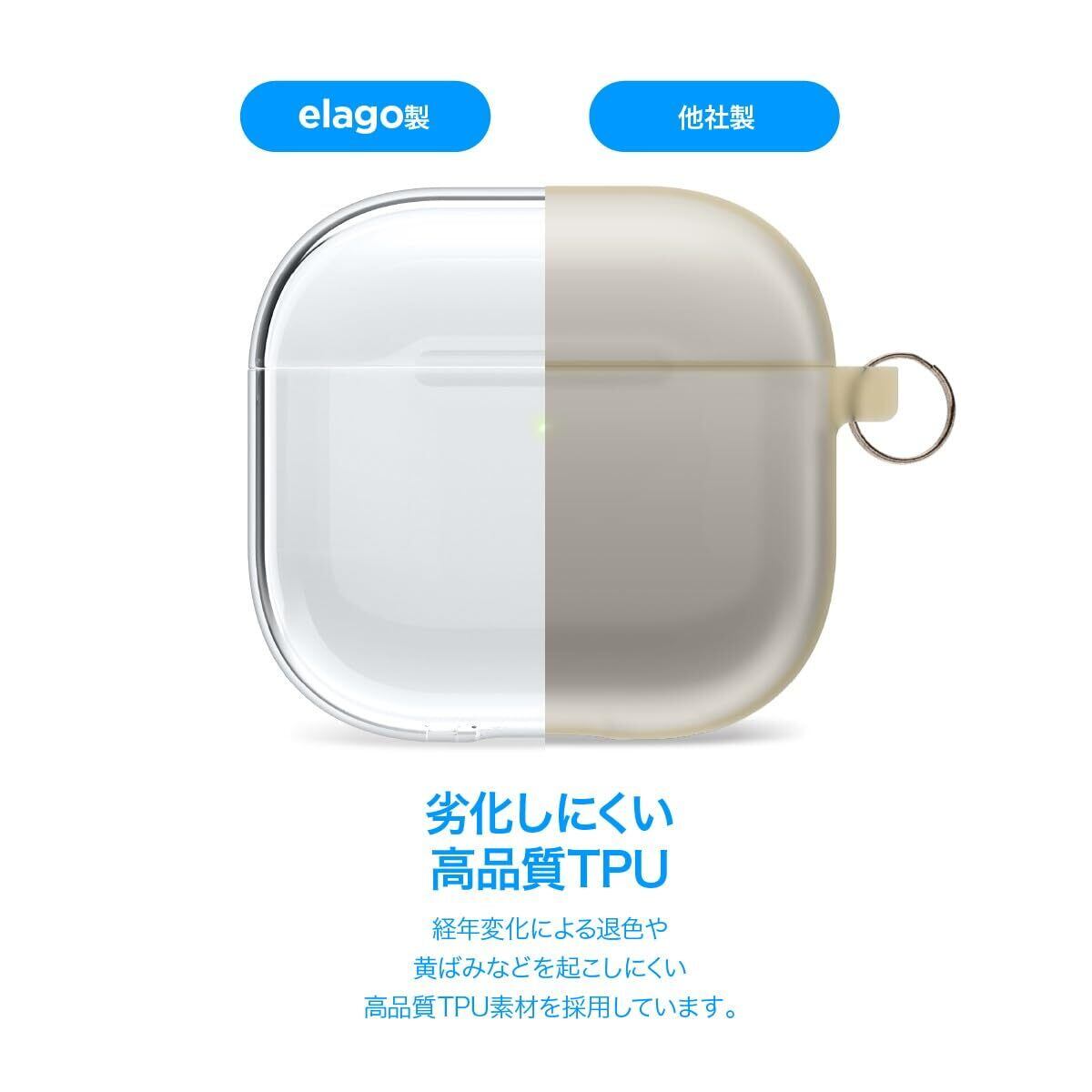 【elago】 AirPods 4 対応 ケース 透明 クリア カバー カラビナ 付き 落下防止 ワイヤレス充電 MagSafe 対応 ソフト TPU クリアケース [ AirPods4 エアポッツ 4 第4世代 対応 ] CLEAR HANG CASE アクアブルー