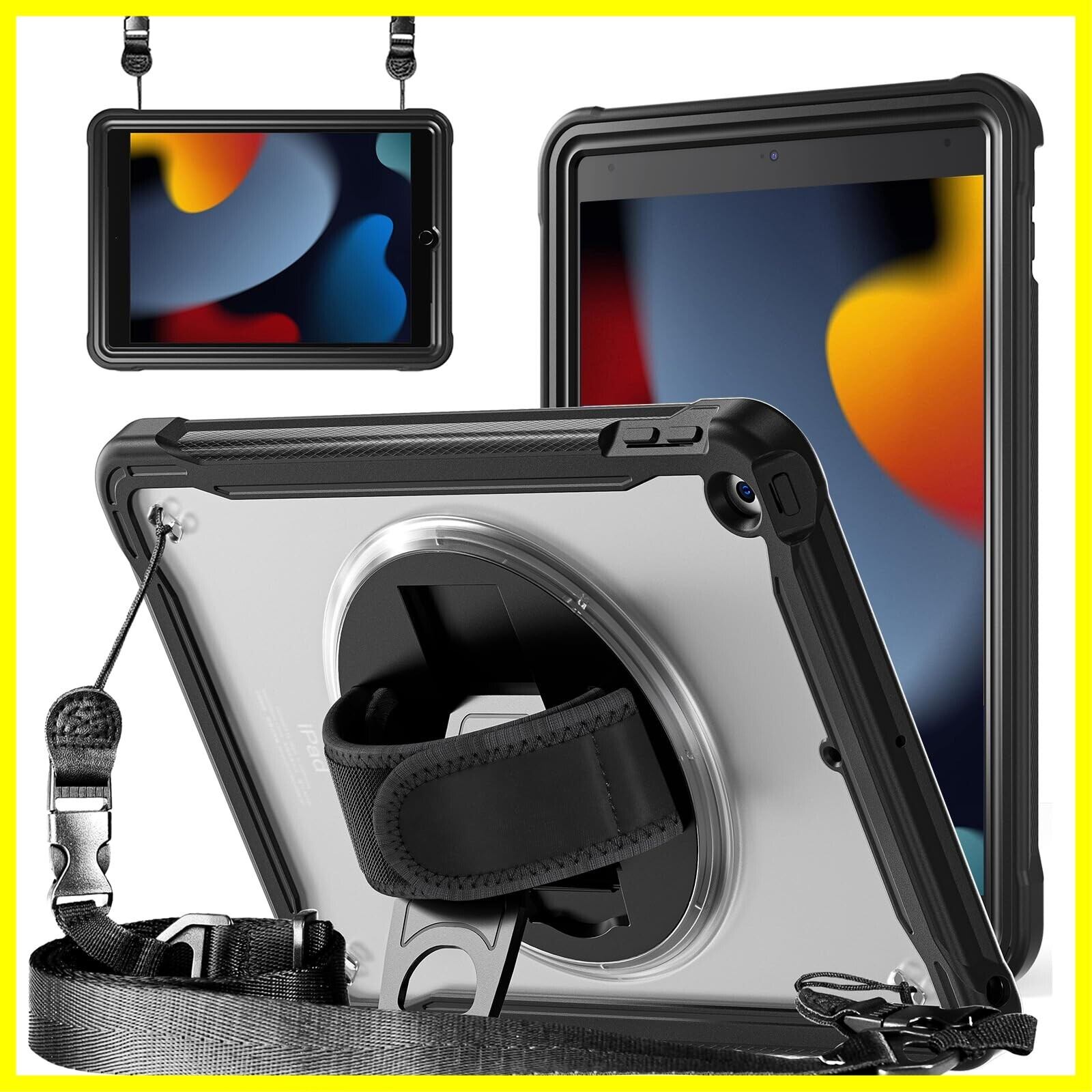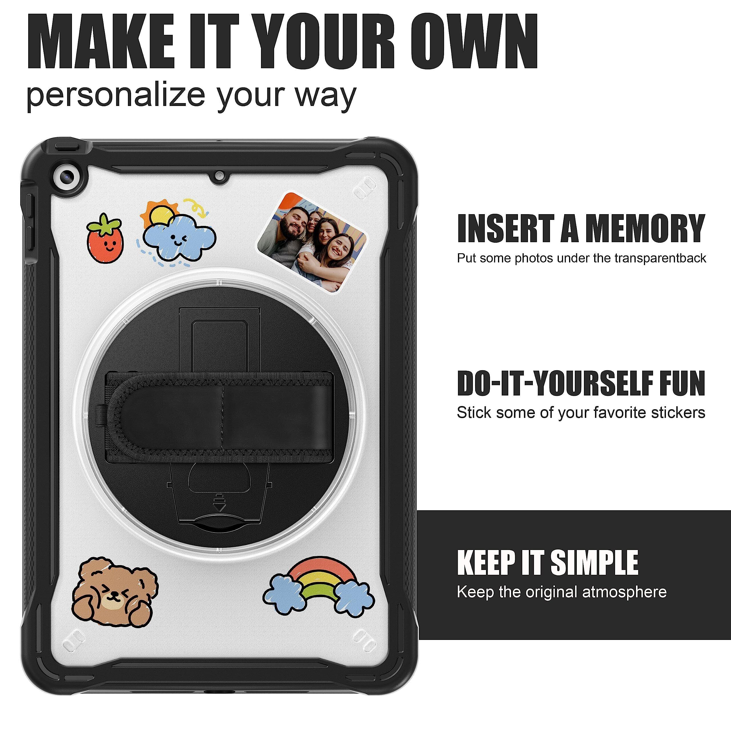 ZenRich iPad 第9/8/7世代 ケース,iPad 10.2 ケース 2021/ 2020/ 2019 iPad 9/8/7世代 ケース 肩掛け 360度回転の折り畳スタンド ハンドストラップ 肩掛け付き ペン収納 半透明 全面保護カバー 可DIY (適格請求書発行事業者)
