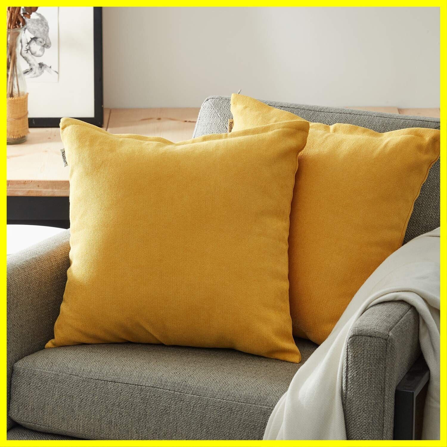 Topfinel クッションカバー リネンっぽい 40×40cm 北欧 おしゃれ 綿麻 無地 ソファ背当て 装飾枕カバー 座布団カバー イエロー 2枚セット(全10色)