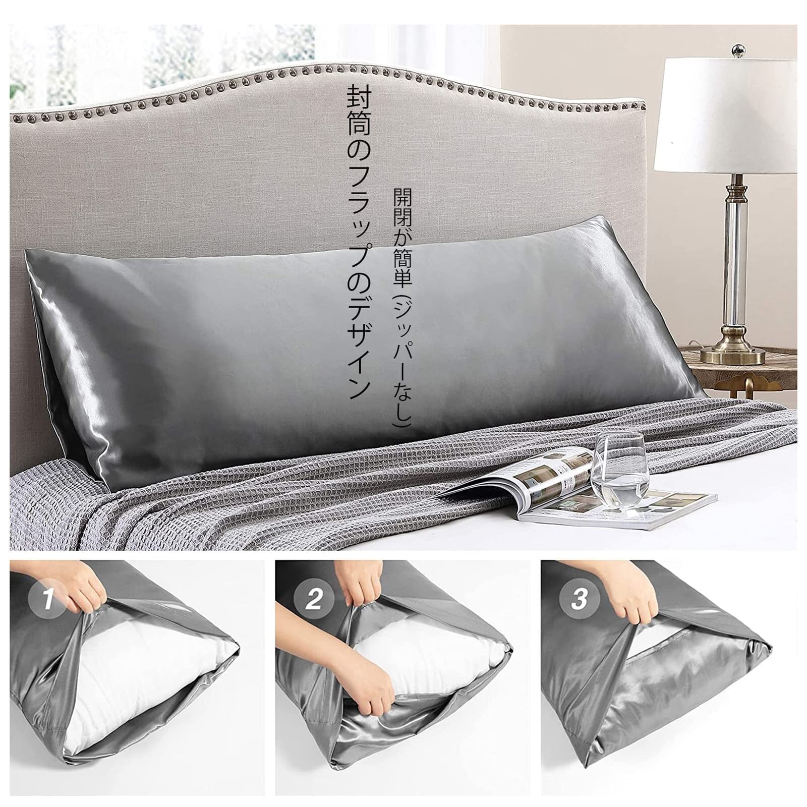 ピローケース 人工シルク枕カバー 究極の肌触り 枕 カバー ロング枕カバー 美肌 美髪 枕ケース マクラカバー 防臭 夏 冬 無地 おしゃれ 枕かばー まくらかばー ホテル用枕カバー 家庭用ピローケース ダークグレー