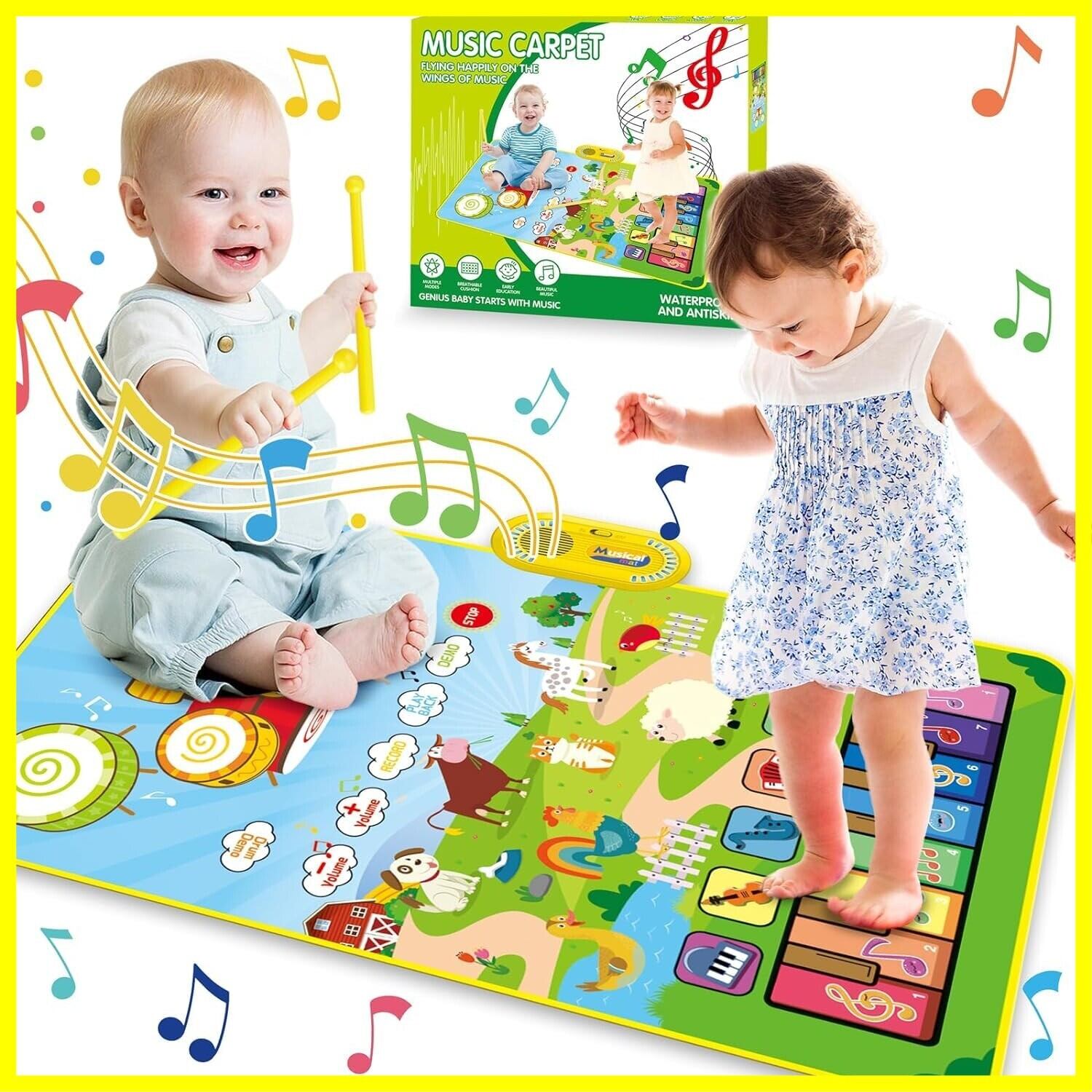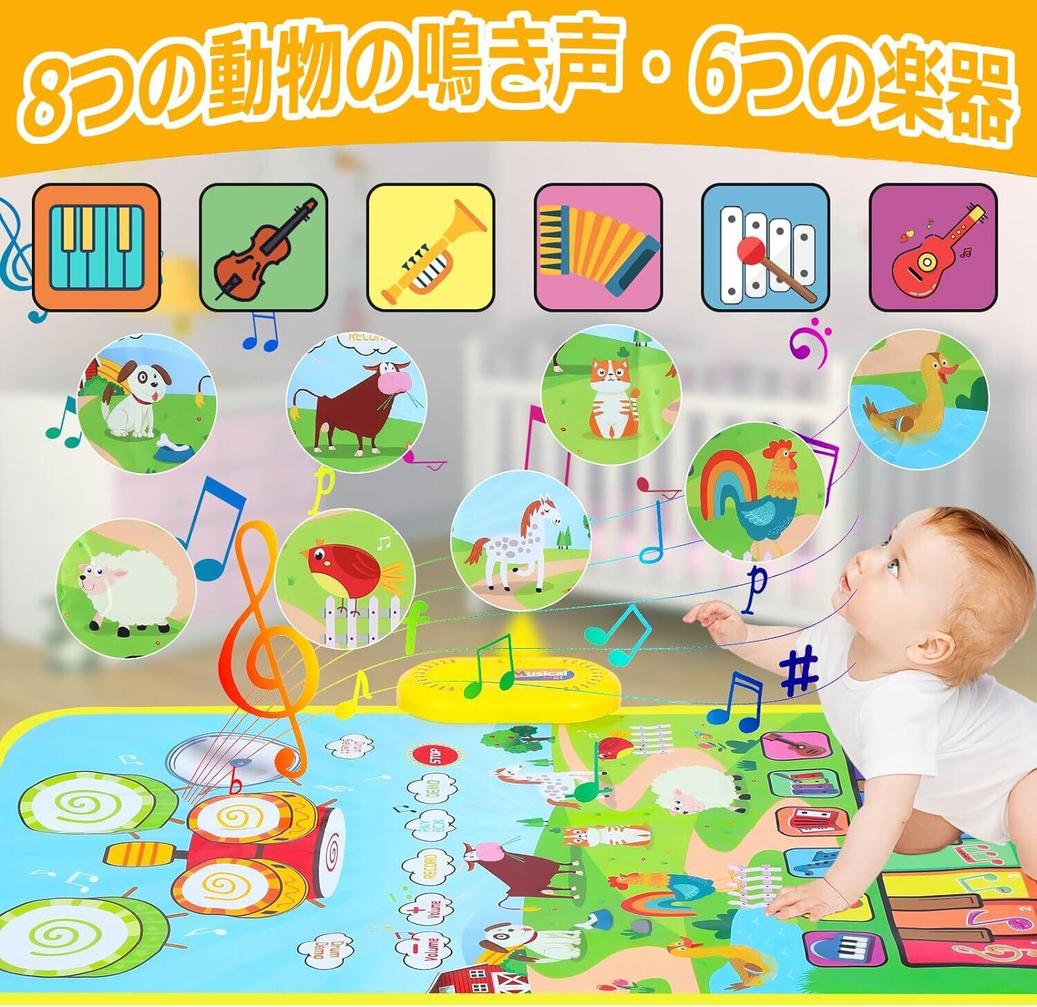 多機能&早期教育:ミュージックマット子供のための音楽マットにはピアノ鍵盤、ドラム、21曲デモ、6つの楽器、録音・再生機能があり、女の子と男の子はさまざまな音楽スタイルを試すことができ、さらにベビーの音楽の才能を啓発し、基本的な音楽スキルを発展させることができます。ミュージックマットは、子供が跳びはねたり歩いたり、手を使ってピアノの鍵を演奏したりするのをサポートし、手足の調整力を高めるのに最適です。子供のための完璧なベビー学習玩具女の子男の子のためのピアノ。