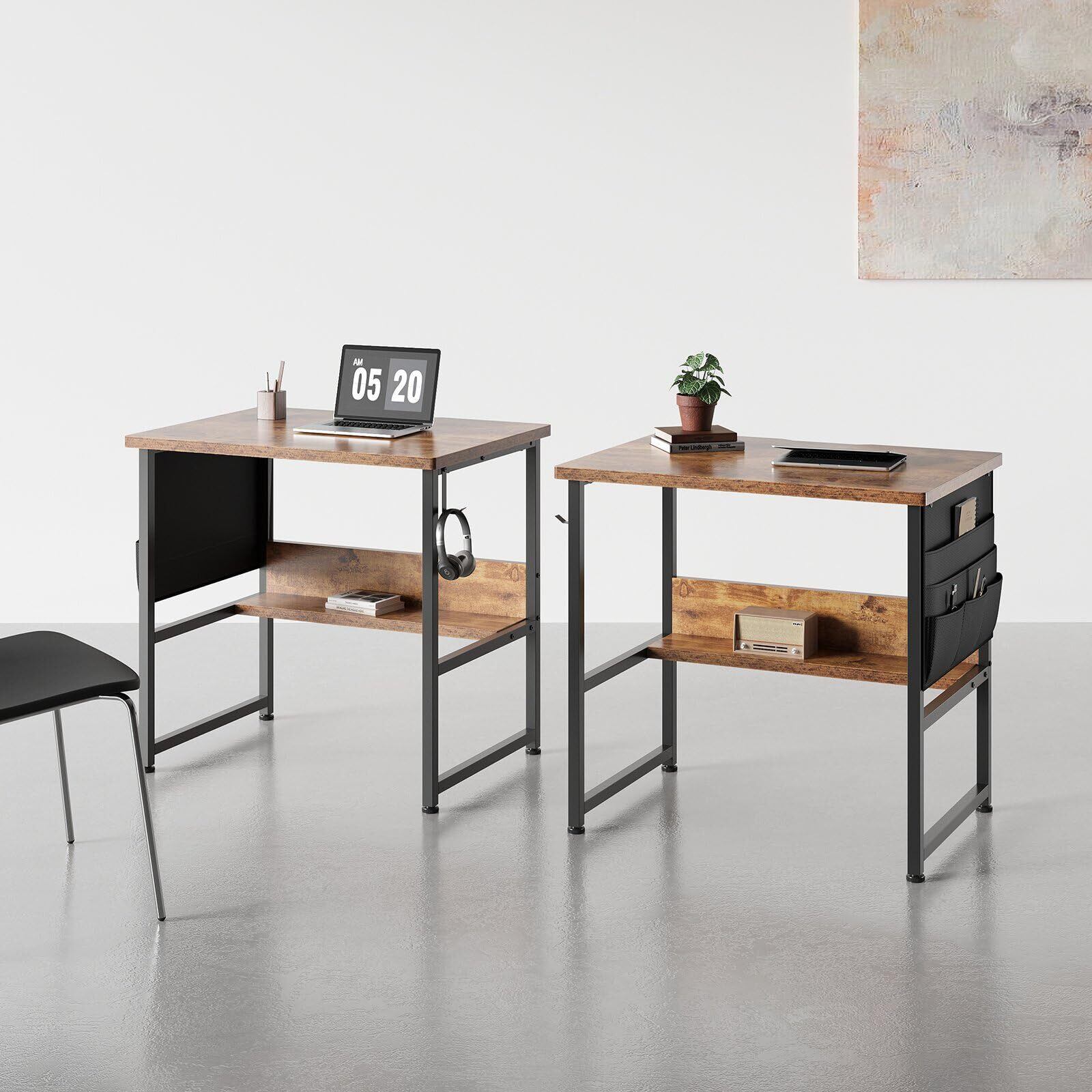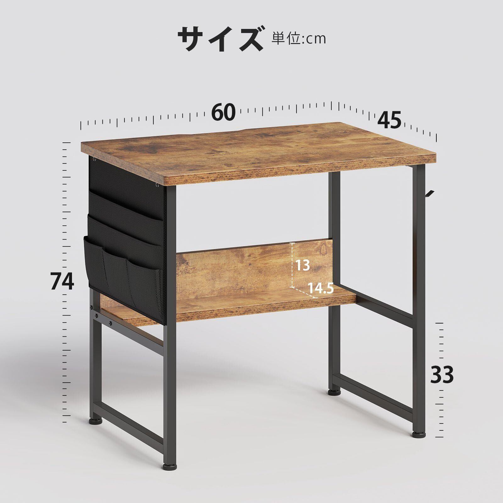 机 pcデスク ミニ コンパクト ラック付き パソコンデスク 幅60cm×奥行45cm 収納袋付き 勉強机 下棚付き 学習デスク 学習机 省スペース 在宅ワーク 事務机 ビンテージ