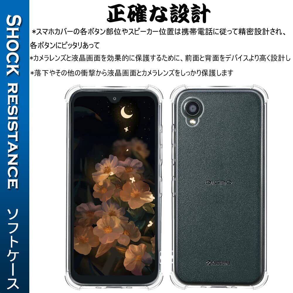 『全面保護』DIGNO BX2/A101KC 用のケース Digno SX2/KC-S302 用の保護カバー 薄型 TPU材質 『四隅がエアクッション構造』 耐衝撃 エクスペリア ケース スマホケース 黄変防止/滑り止め/擦り傷防止/柔軟/光沢感/軽·薄/透明