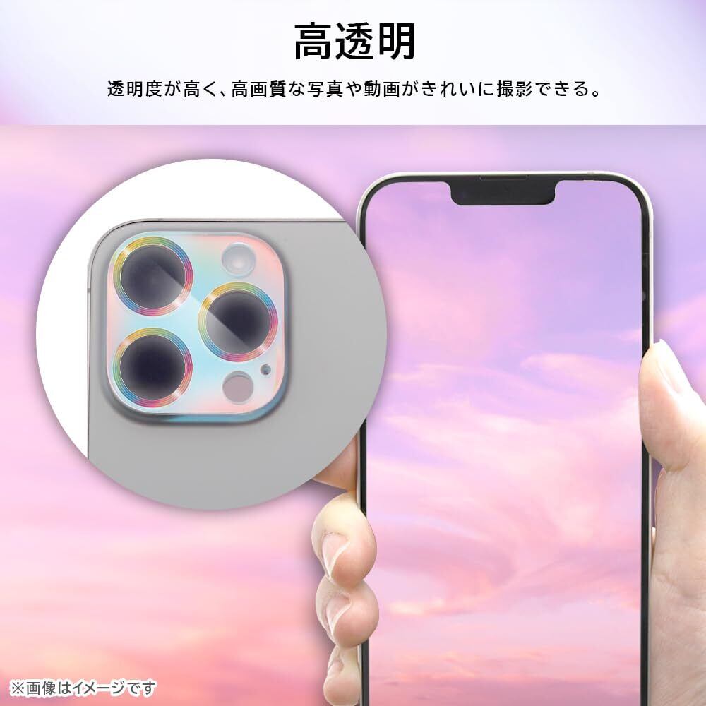 カメラのフチを彩るオーロラ加工。レンズ部分の透過率約92%、高画質な写真や動画が撮影できる。汚れをはじくコーティングで清潔な状態を保つ。誰でも簡単に装着でき、位置ズレの心配なし。