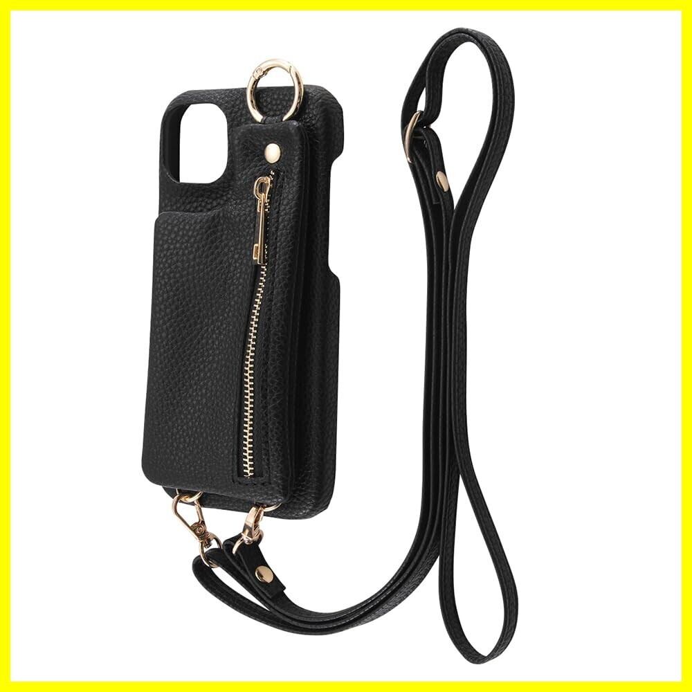 iPhone 15 Plus ケース オープンレザーケース ショルダーストラップ ポーチ付き m1n1 ブラック