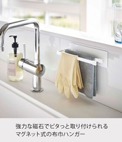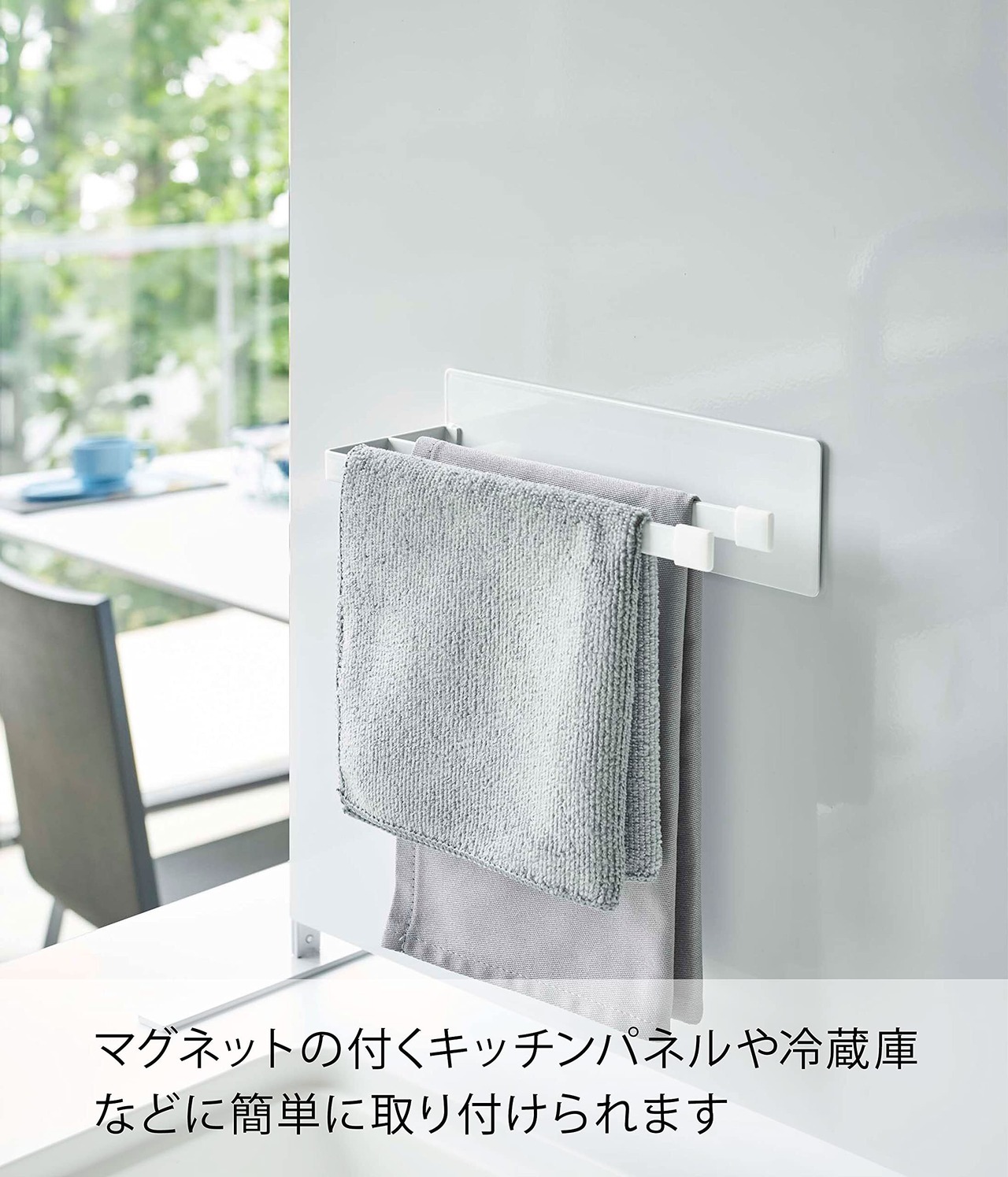 マグネットが付くスチール壁面に簡単取り付けの布巾ハンガー。