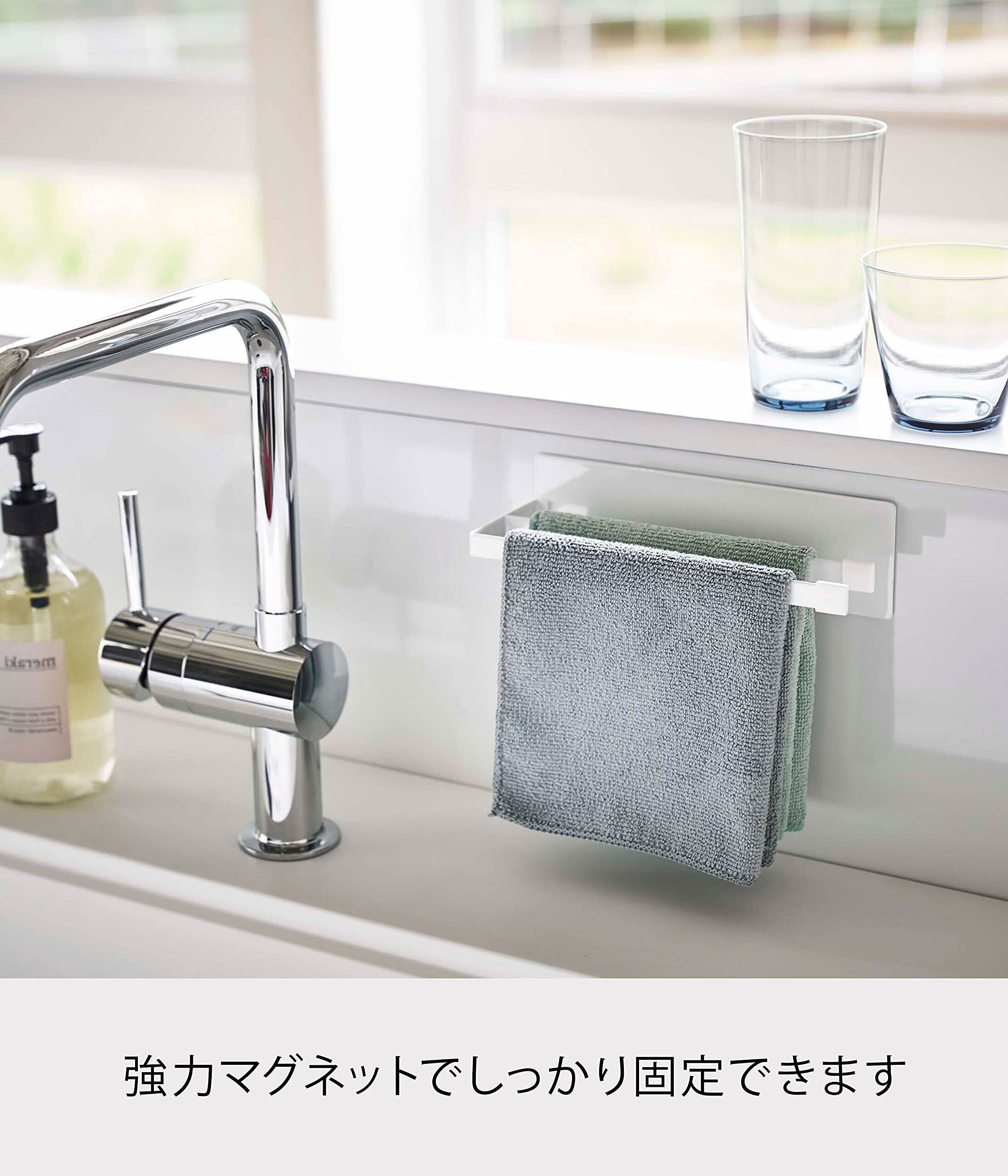 山崎実業(Yamazaki) マグネット 布巾ハンガー スリム ホワイト 約W20XD7.5XH6cm タワー 浮かせる収納 簡単取り付け 5142