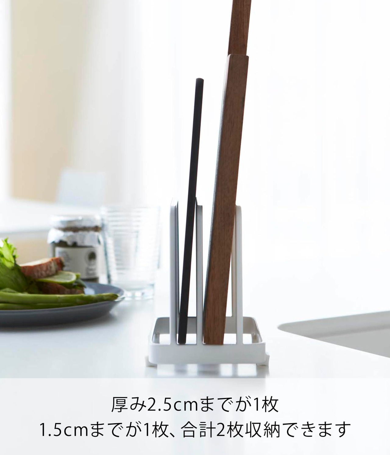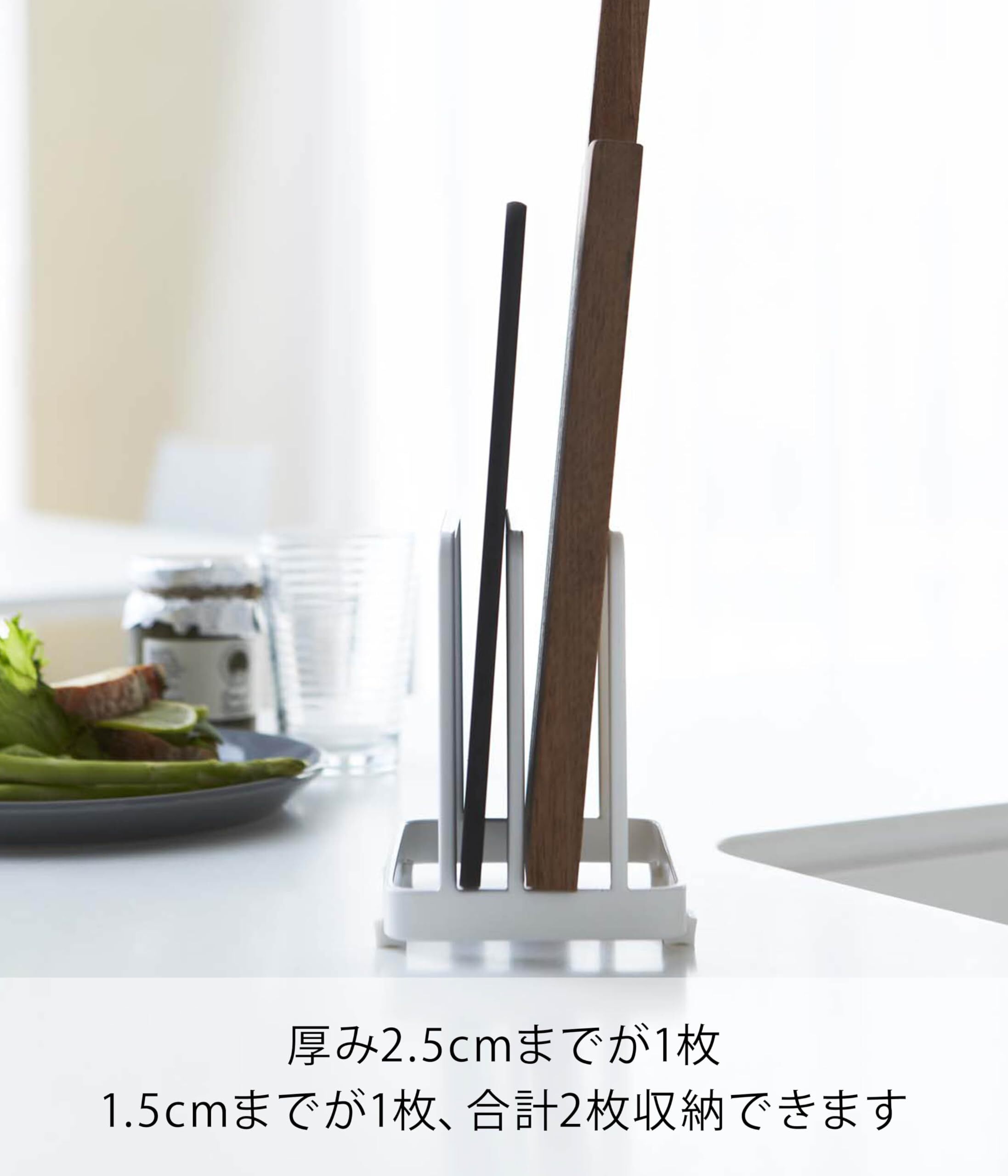 まな板をコンパクトに立てて収納。薄いまな板と厚手のまな板を収納可能。 より ●まな板をコンパクトに立てて収納。薄いまな板と厚手のまな板を収納可能