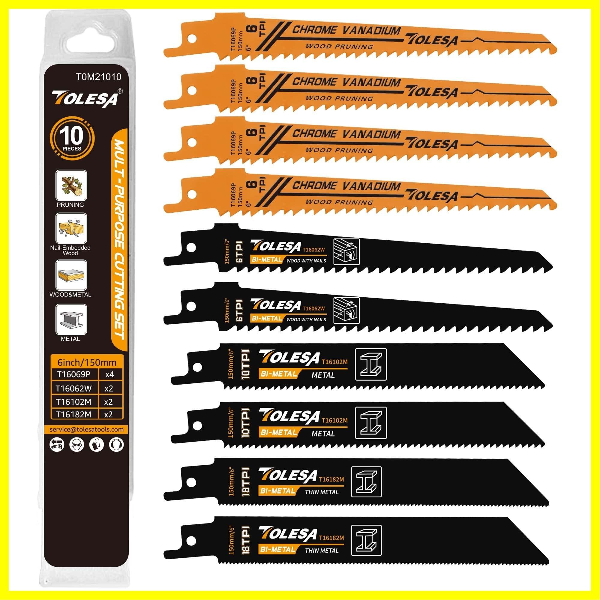 TOLESA レシプロソー替刃 バイメタル レシプロソーブレード 金属&木工 枝打ち セーバーソーブレード 替え刃セット 収納ケース付き 10本入れ