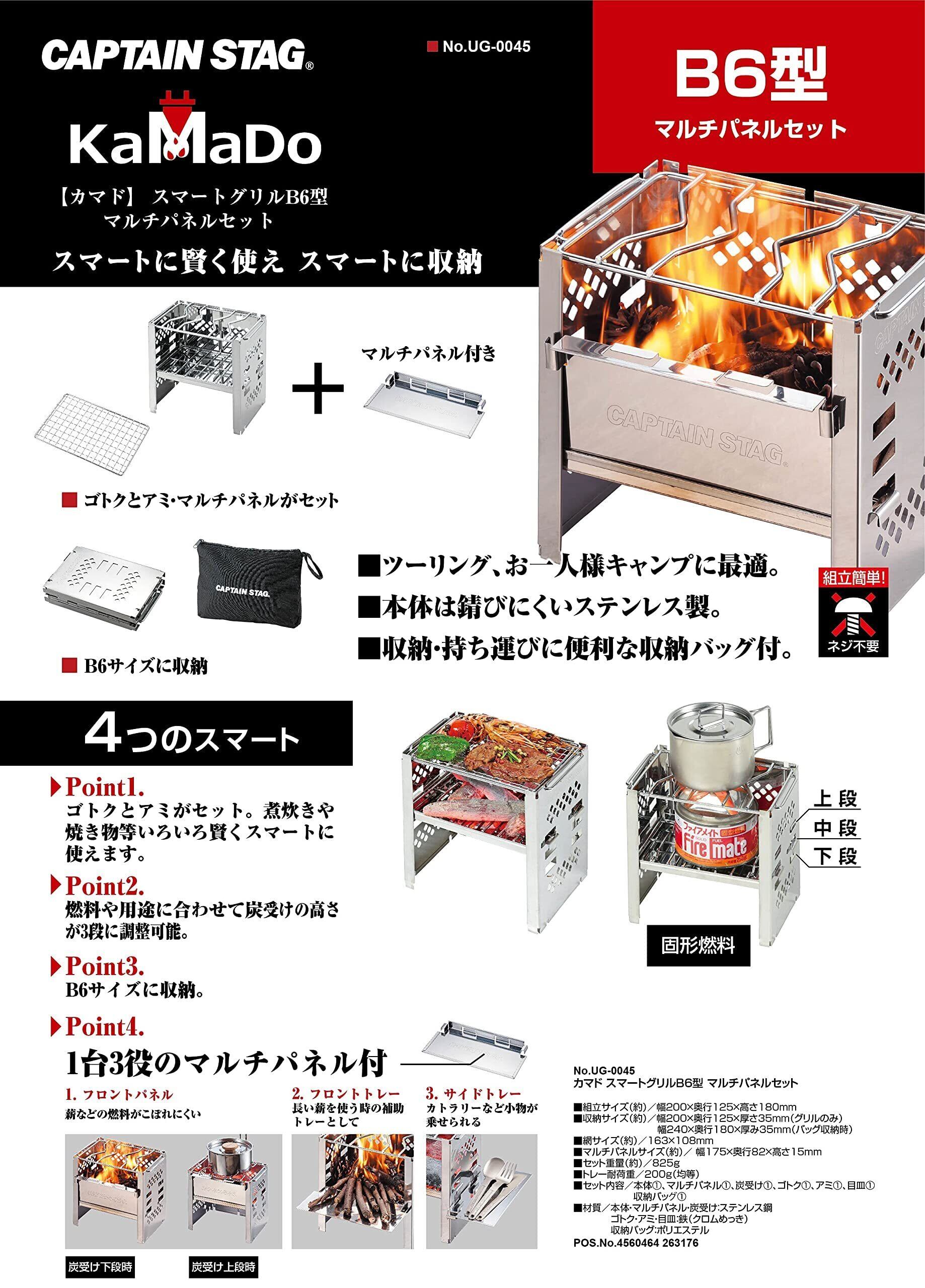 【 限定】 キャプテンスタッグ(CAPTAIN STAG) バーベキューコンロ 焚火台 1台3役 折りたたみ カマド スマートグリル 【B6型/B5型】 3段階調節可能 ステンレス製 バッグ付き UG-45/UY-7021
