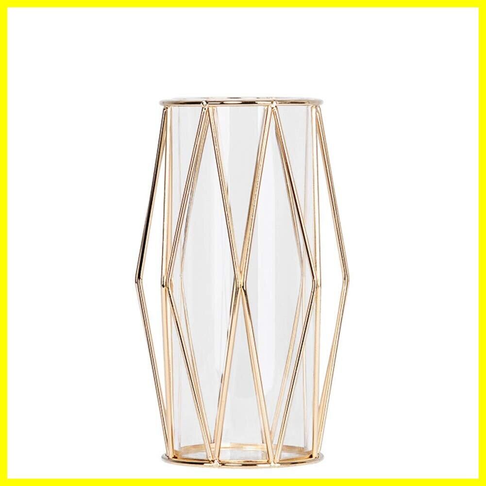 異素材の組み合わせの新しいフラワーベース。北欧風のシンプルデザインですので、部屋のどこに置いてもすんなりと馴染みます。菱形のメッキ仕上げの鉄フレーム×ガラスの異素材の組み合わせがおしゃれ。ガラスの容器と鉄のフレームを分離することができ、ガラスの容器を取り出すと、植物に水を換えることが簡単です。生け花やドライフラワーなどを飾ればお部屋が華やかになります。