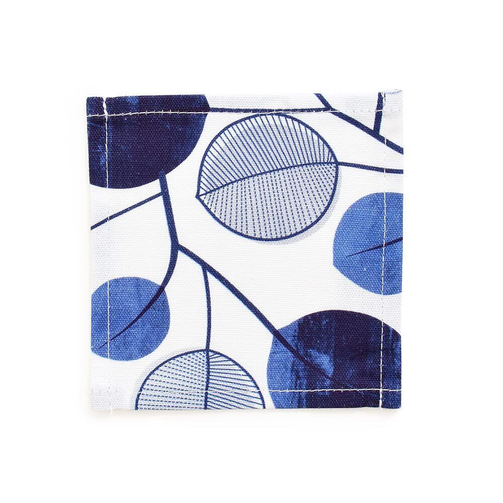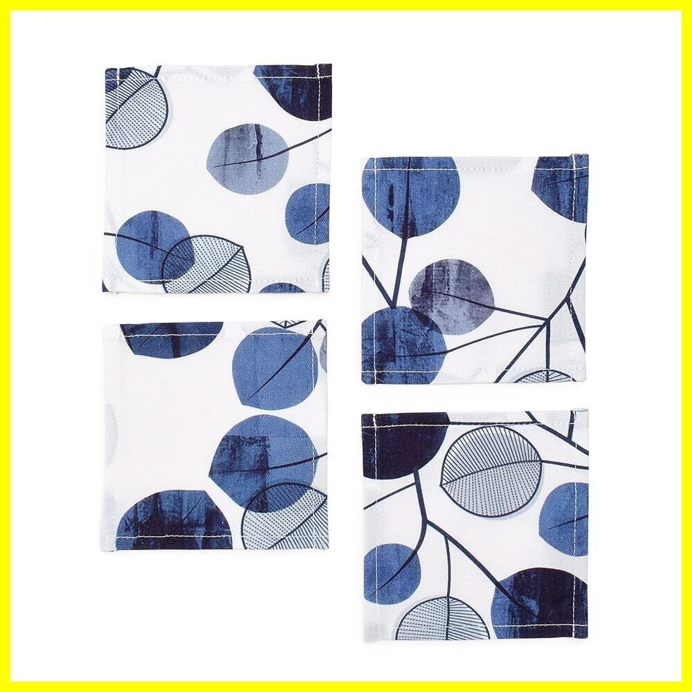 コースター 綿100% おしゃれ 布 4枚セット 洗える 北欧 ネイビー リーフ スタイルデコール W3002200