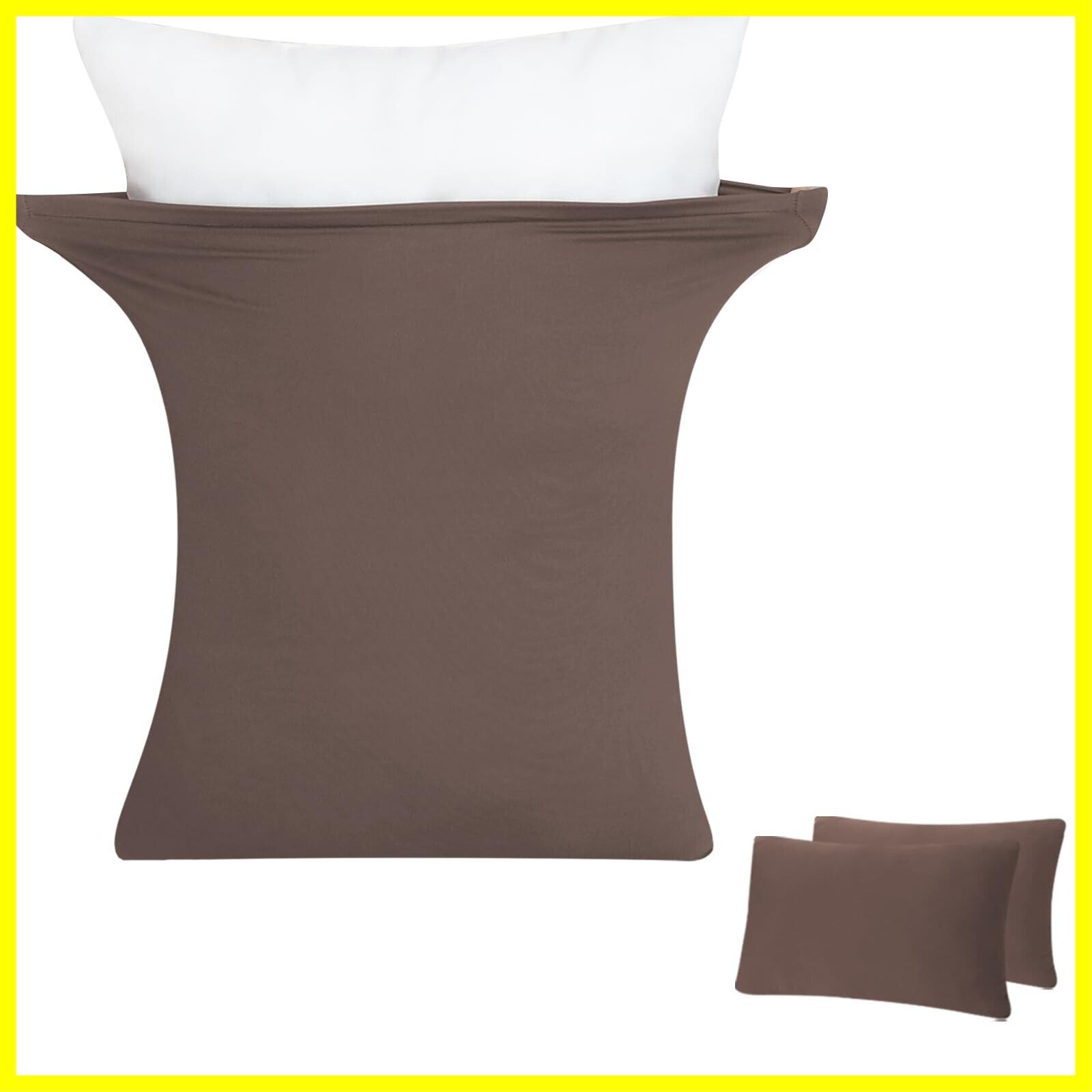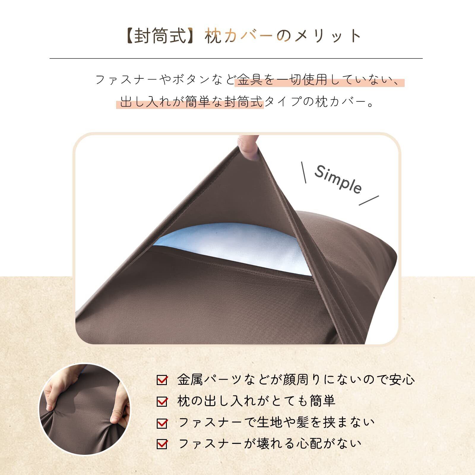 【超ソフト・弾力UP】のびのび枕カバー2枚組 43x63cm~50x70cm枕適用 まくらカバー ピローケース 封筒式 3Dストレッチ Tシャツ素材 綿タッチ さらさら肌触り 抗菌防臭 吸汗速乾 伸縮オールシーズン 丸洗い ブラウン