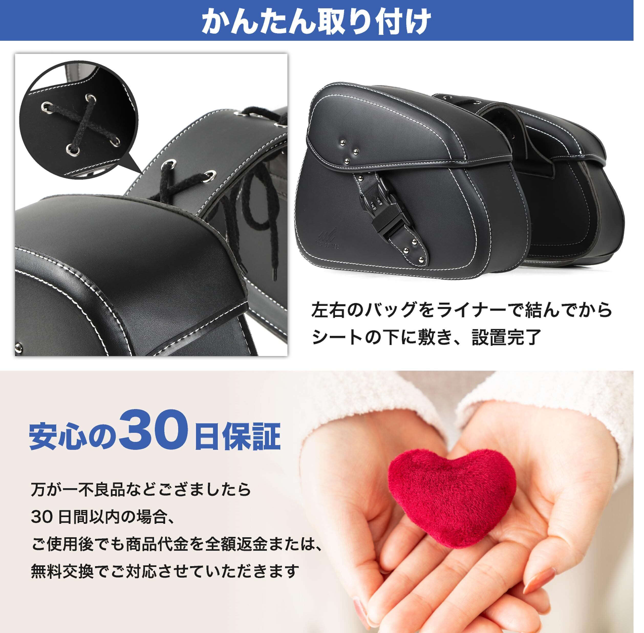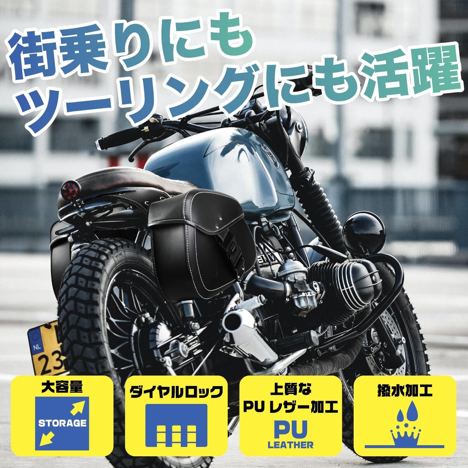 MOTOSTAGE バイク サイドバッグ ダイヤルロック付き 容量約6L×2 レザー 撥水 防水 アメリカン 鍵 ロック ブラック ツーリング (Medium, Modern, Black)