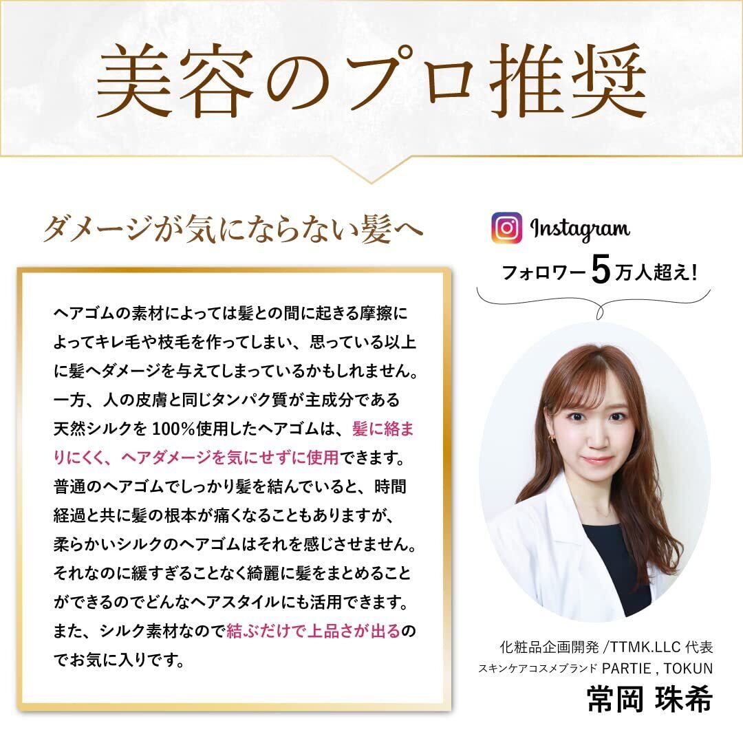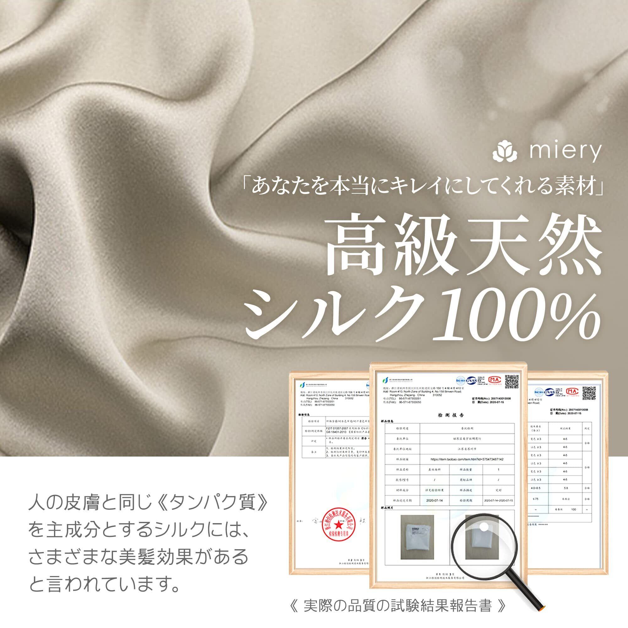 【天然シルク100%使用】あなたを本当にキレイにしてくれる素材、天然シルクを100%使用。人の皮膚と同じ「タンパク質」を主成分とするシルクには、うれしい美髪効果も。すぐれた保湿力で、髪の毛のサラサラ感をキープします。