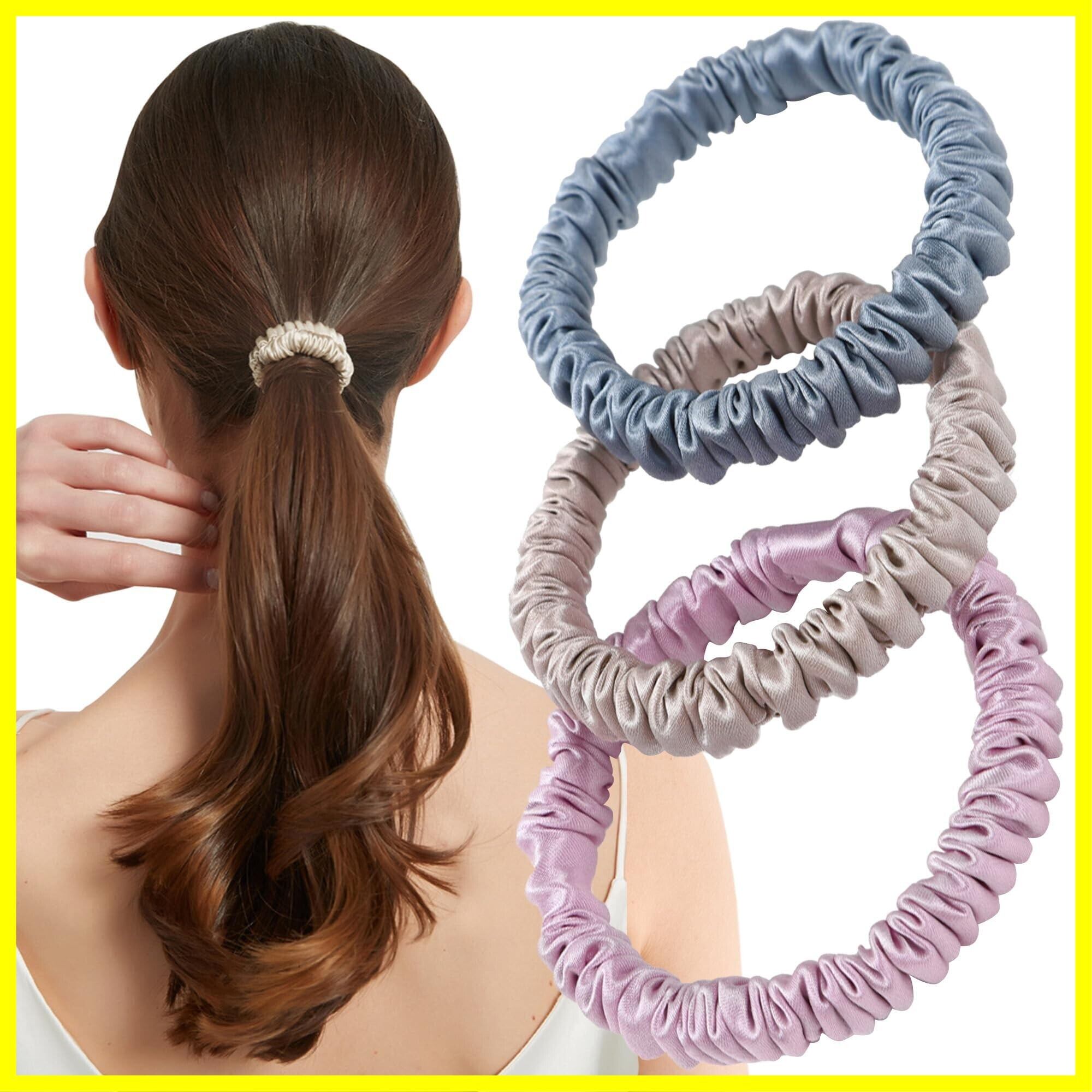 ヘアゴム シュシュ シルク 100% 髪ゴム 【美容のプロ推薦】 『髪に優しくダメージ軽減』 3個セット 大人 おしゃれ (アソートF【グレイッシュ】)