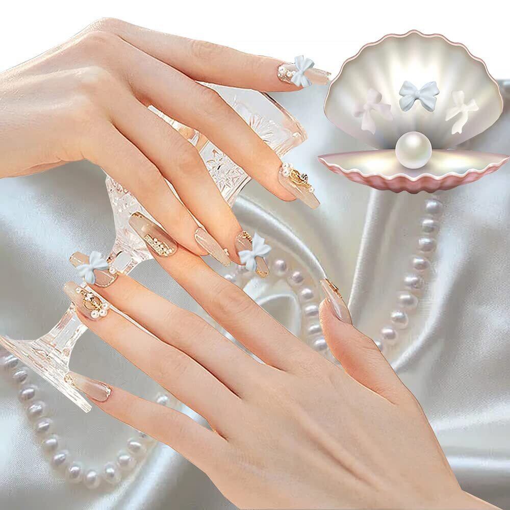 ネイルパーツ 3D 立体 蝶結び 半円パール 1セット ネイル装飾 DIY ジュエリーパーツ ハンドメイド 手作り デコパーツ ネイルアート レジン デコパーツ ブラック ホワイト