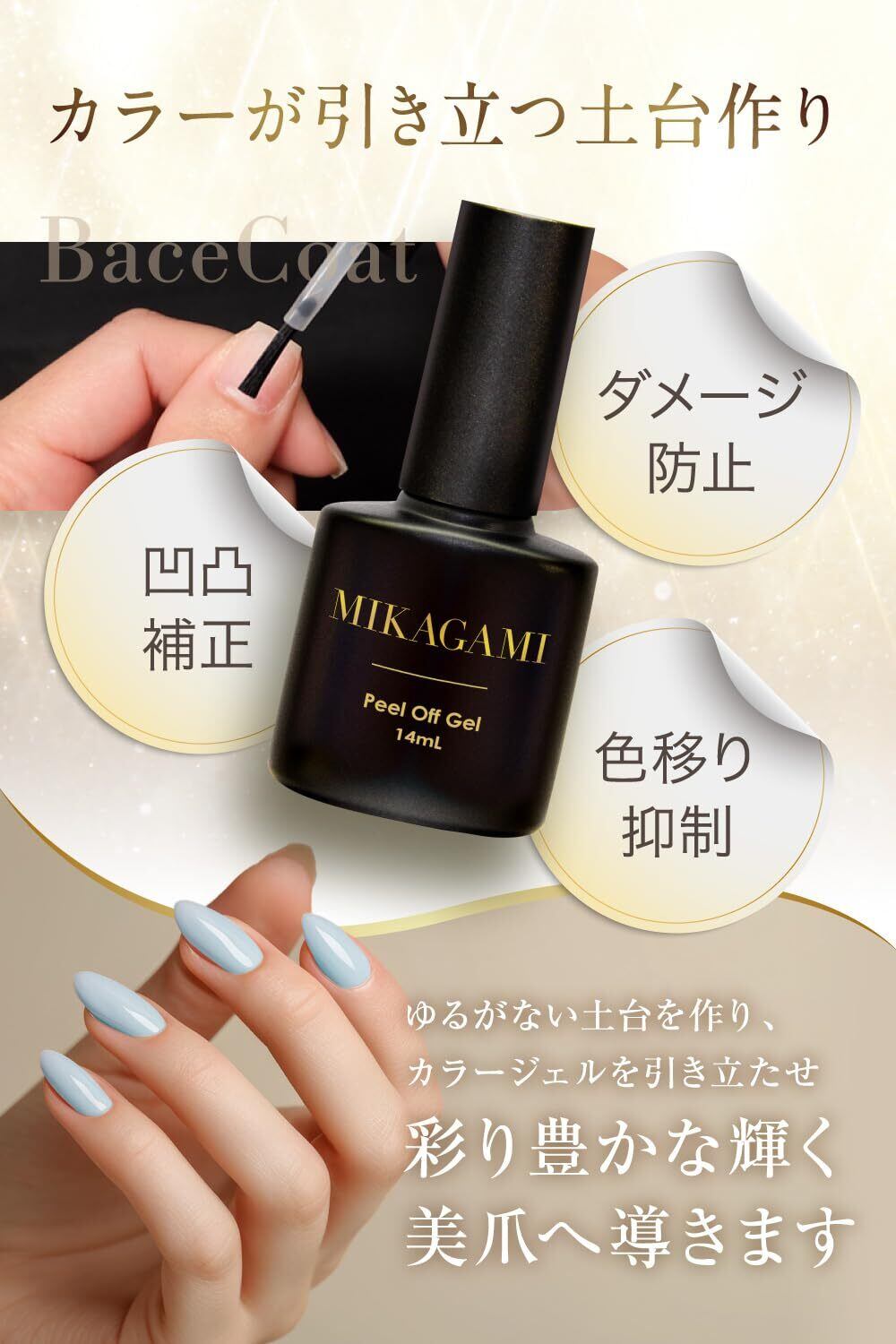 MIKAGAMI ピールオフジェル 剥がせるベースジェル HEMAフリー 14ml 日本製