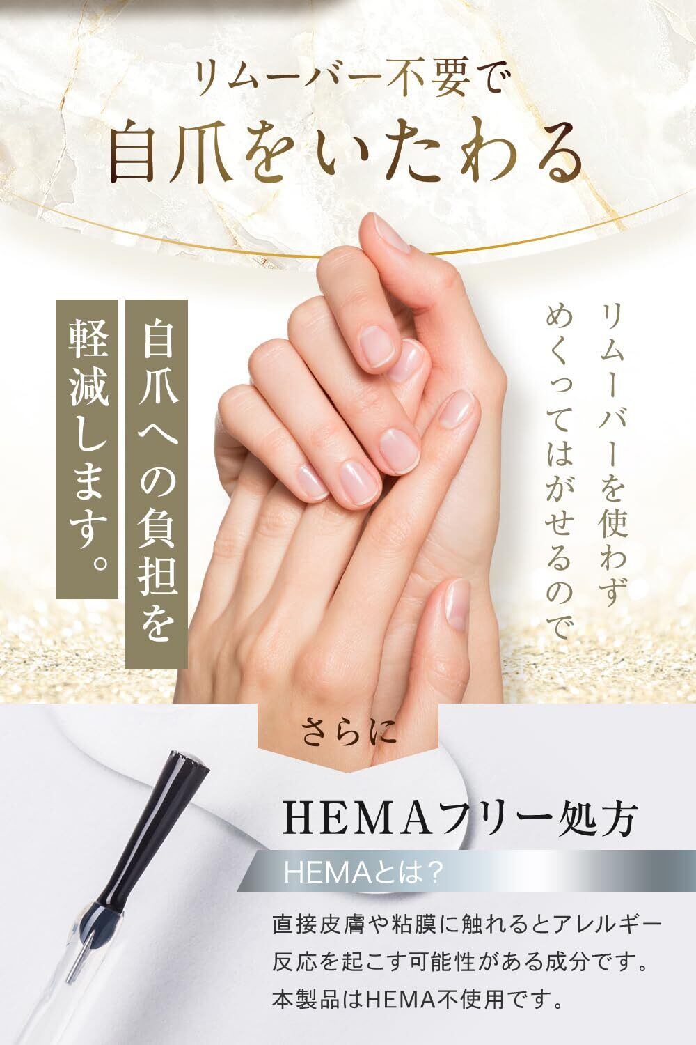【自爪の負担を軽減する】ジェルオフの際、リムーバー不要なので自爪への負担を軽減します。