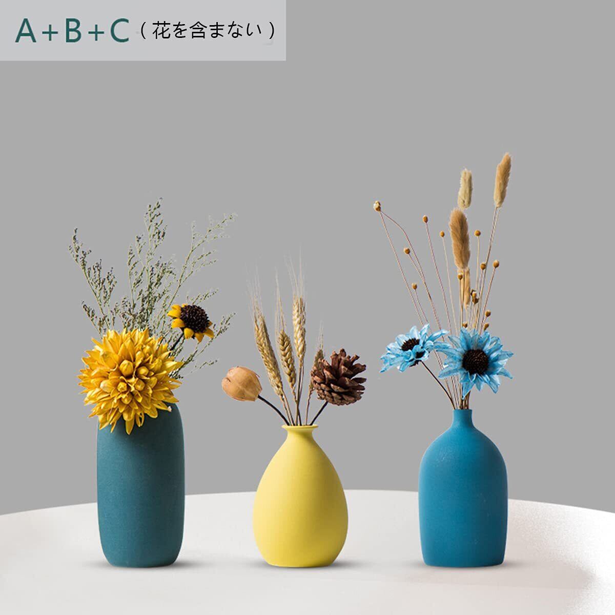 花瓶 陶器 一輪挿し ミニ おしゃれ フラワーベース 3点セット小さめ 和風花瓶 日本 ブラックセラミック 黑 植木鉢インテリア飾り プレゼント (セット-(ABC-3点入り))