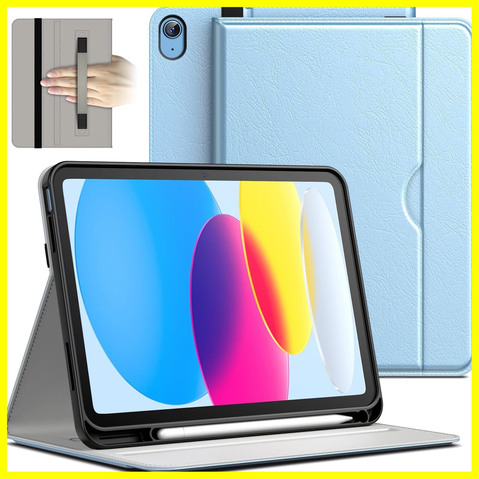 JETech iPad(A16)ケース 第11/10世代(2025/2022モデル)用PUレザー ビジネスフォリオ タブレット保護カバー Pencilホルダーとポケット付き マルチアングルの視聴 (ブルー)