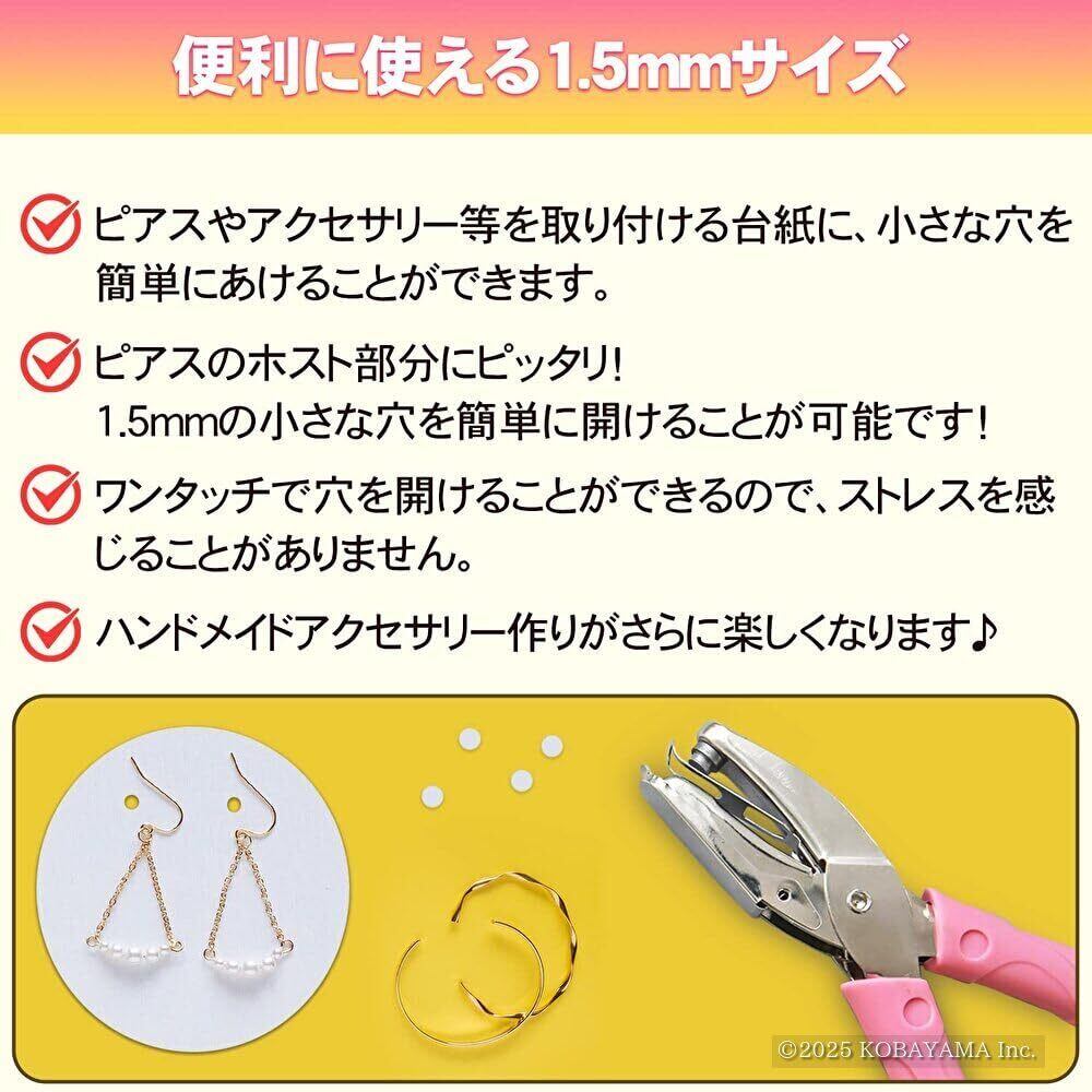 穴あけ クラフトパンチ 1.5mm 小さい 丸 ピアス用 ピアス台紙用 1穴 ハンドメイド フェルト ペーパーパンチ シングル 事務用品 ルーズリーフ