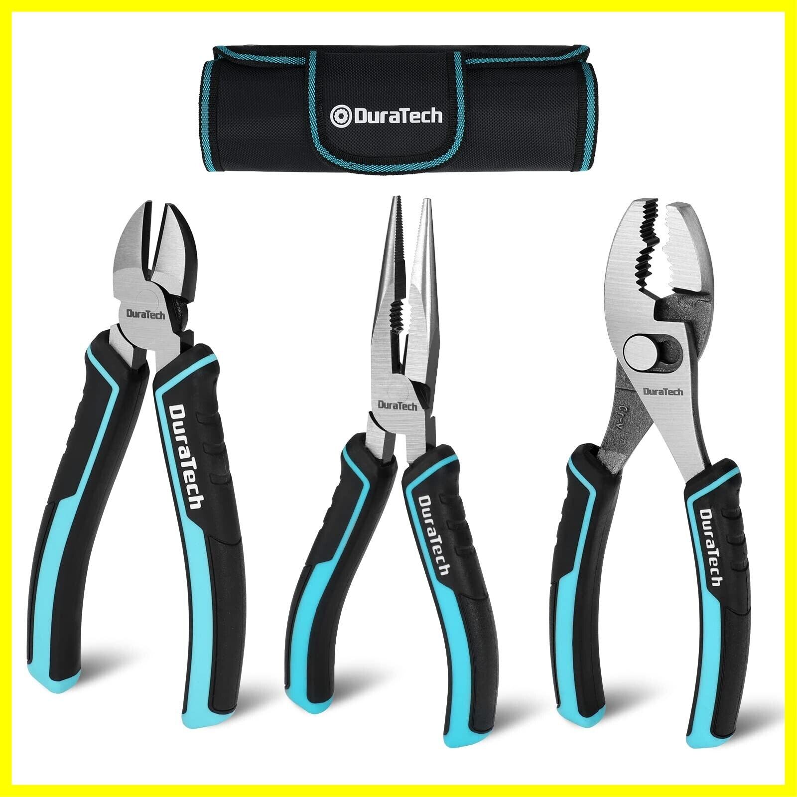 DuraTech プライヤーセット ペンチセット ニッパー ラジオペンチ スリップジョイント 3点セット コンビネーションプライヤー 斜めカッティングプライヤー ニードルノーズプライヤー 収納バッグ付き 宝石 電気技師 家庭修理 作業工具 DIY 手芸用品 手作り アクセサリー作り
