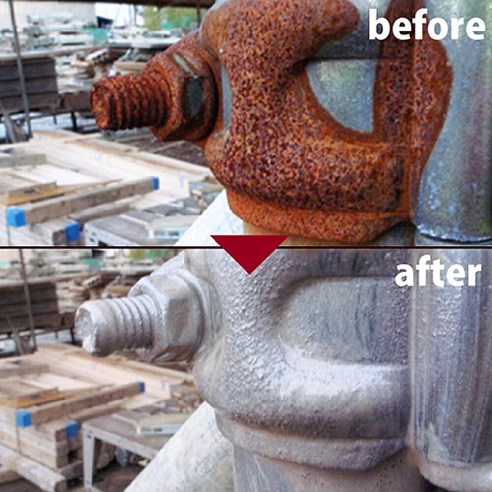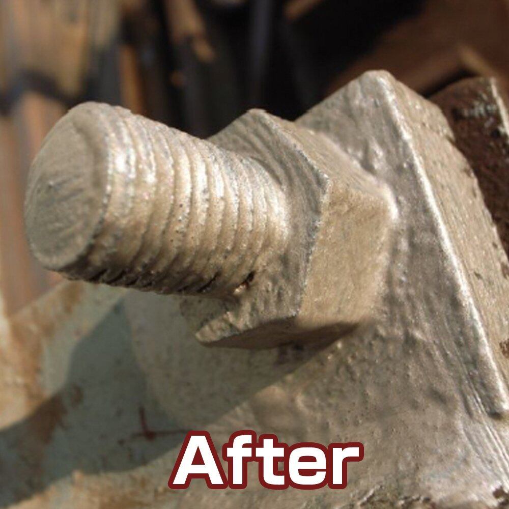 水性系、油性系、各種上塗り塗料が塗装でき、シルバー色で、そのままの仕上げでもOK! 亜鉛メッキにも塗装可能。湿っていても施工可能。サビ部分以外への全面塗装が可能です。