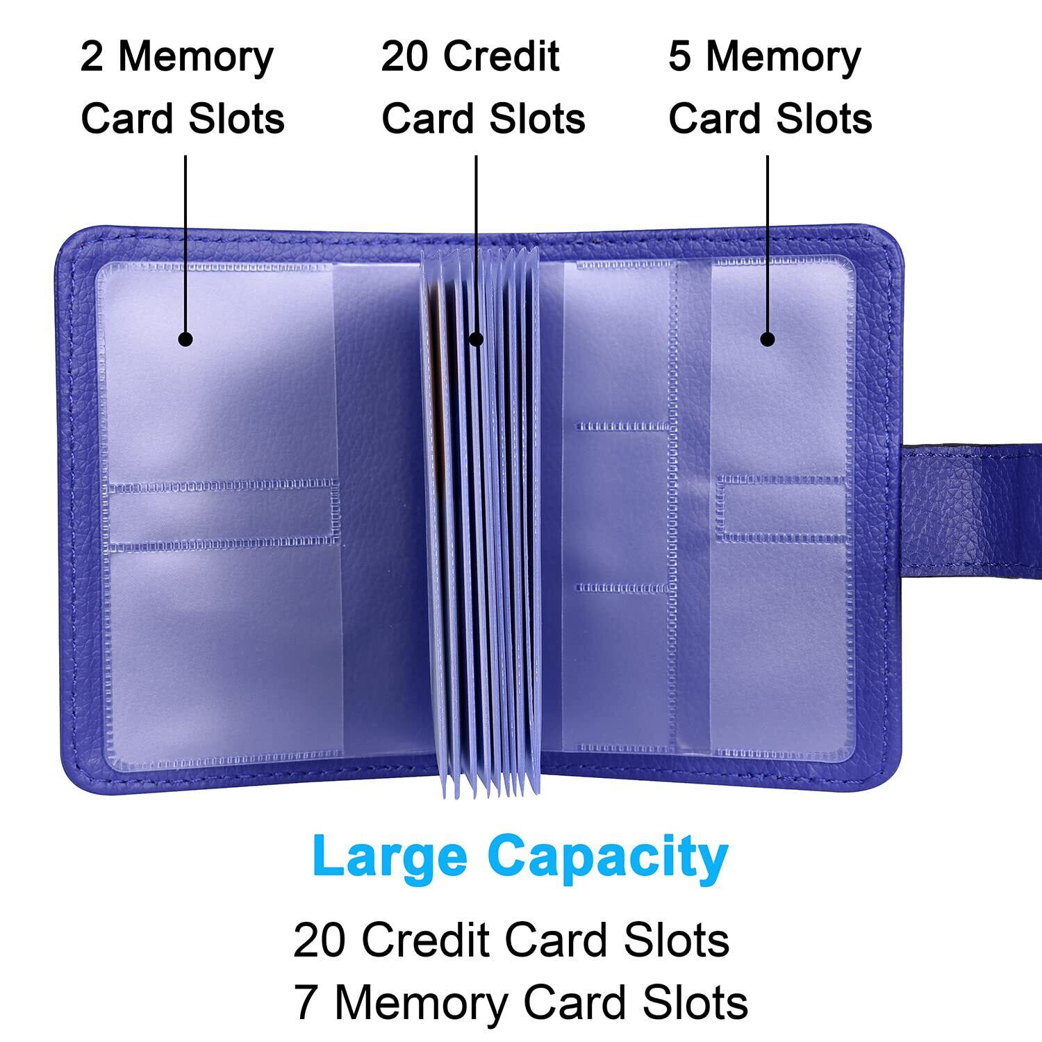 【抜群な収納力】クレジットカード20枚(裏表2枚シートx10ページ)とメモリカード7枚(SD・CF・TF用)を同時にうまく収納できて、わざわざメモリカード専用のケースを購入する必要も要らないです。