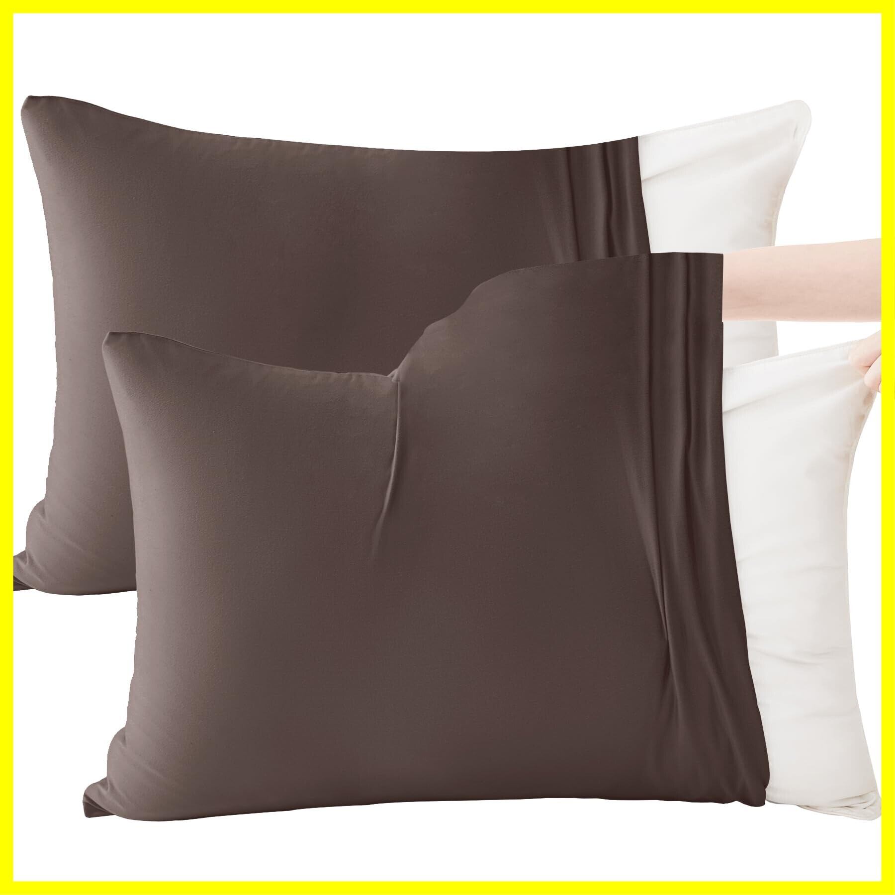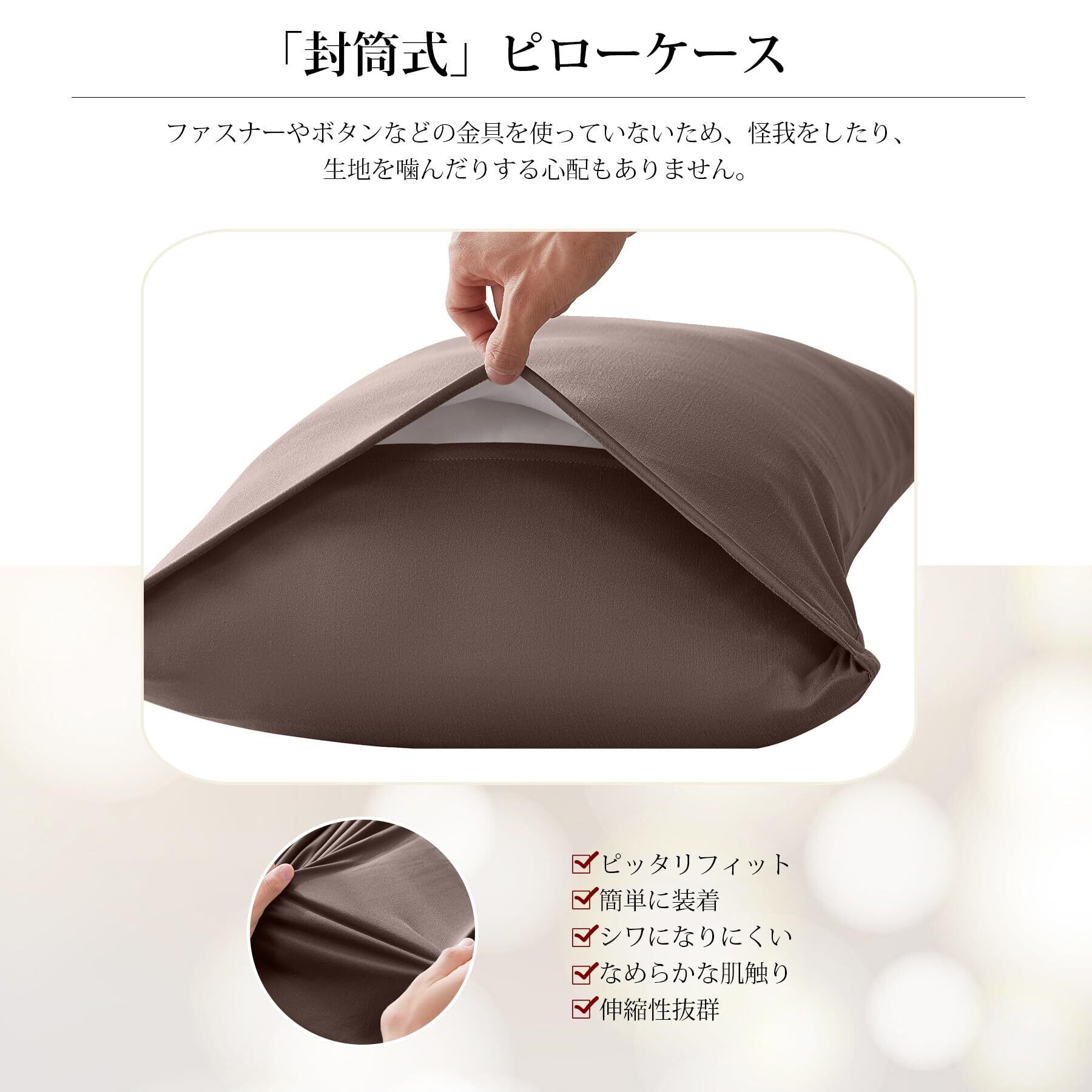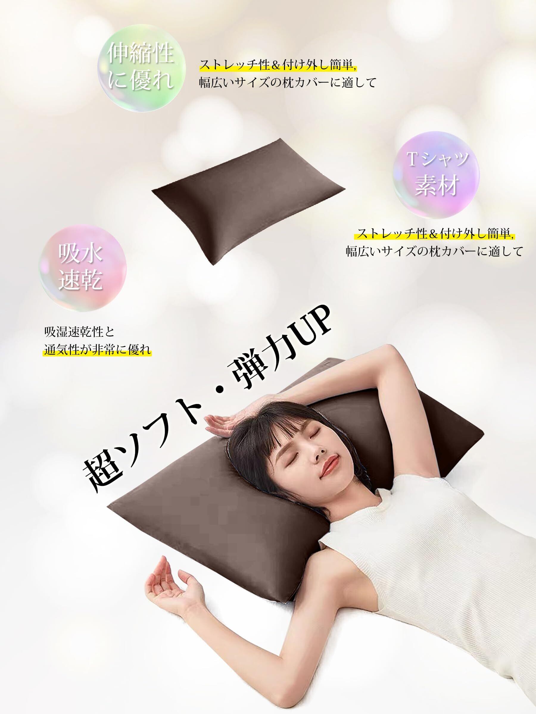 AYO 枕カバー 2枚セットピローケース まくらカバー 3Dストレッチ Tシャツ のびのび枕カバー 封筒式 おしゃれ オールシーズン 超吸水速乾 通気性 抗菌防臭 肌にやさしい 着脱簡単 (枕の43x63cmサイズに適用 ブラウン)