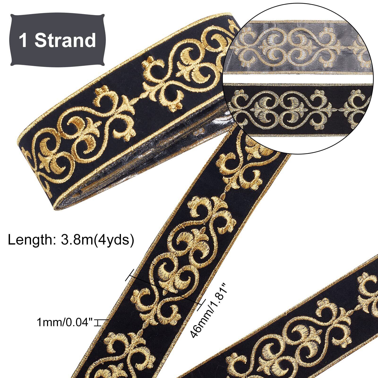 PH PandaHall ジャカードリボン ソーイングクラフト 家の装飾 結婚式 片面刺繍織り リボン 生地トリム フリンジ ギフト包装 バッグストラップ アクセサリー装飾 ステージ衣装 幅4.6cm