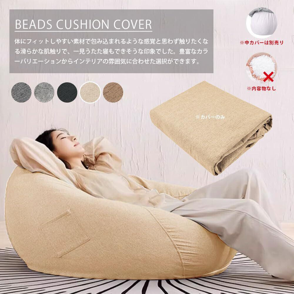 ビーズクッションカバー 人をダメにする ポケット付き カバー取り外し 洗濯可能 付け替えカバー おしゃれ 無地 北欧風 四季適用 座布団カバー 多機能(カッキー 70*80cm)