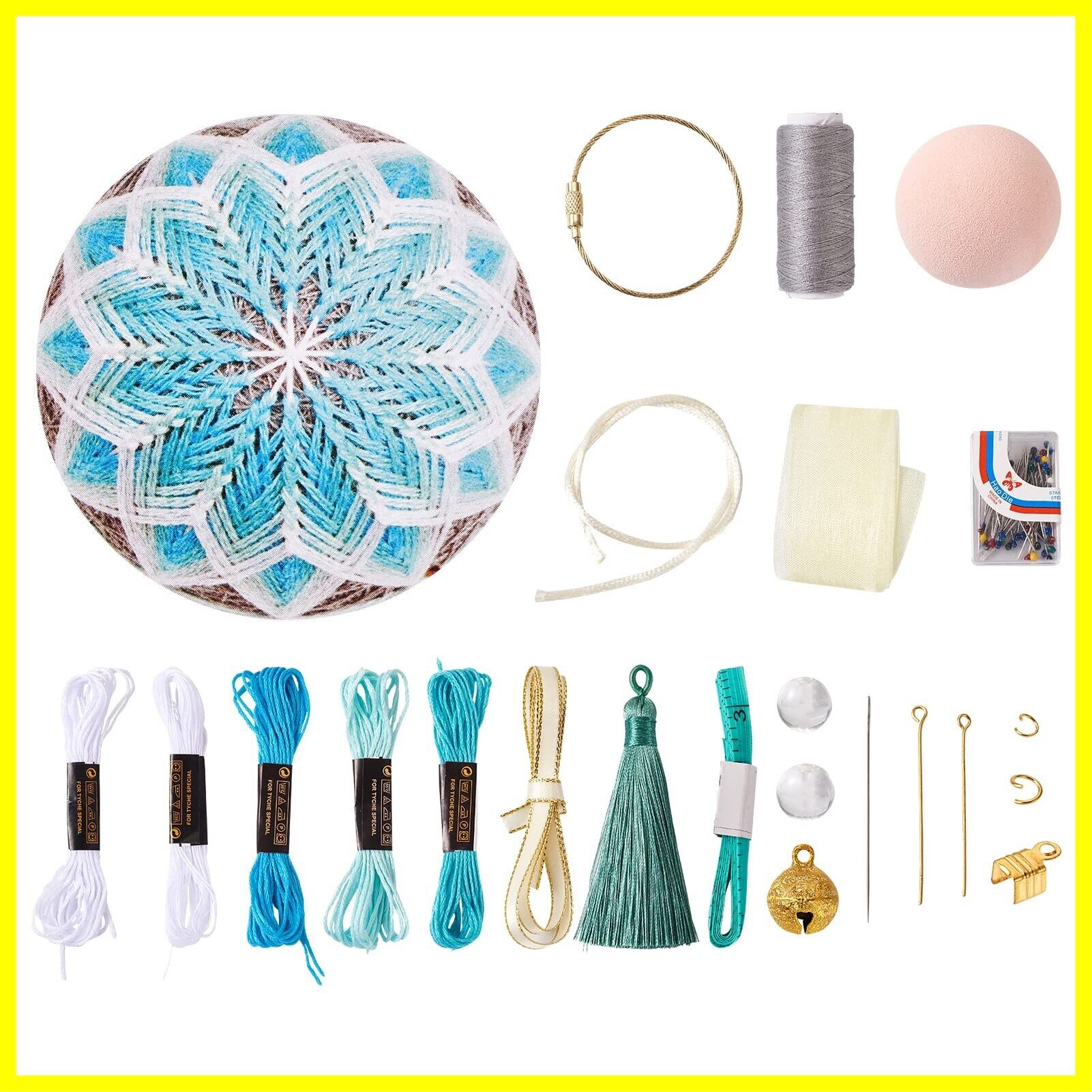 Beadthoven 1セット入り てまり 手鞠 DIYクラフト材料キット 刺繍ギフト 針仕事 手作り ハンドメイド キーホルダー バッグ飾り インテリア ハンキング用 手芸用品 (直径約52mm シーグリーン)