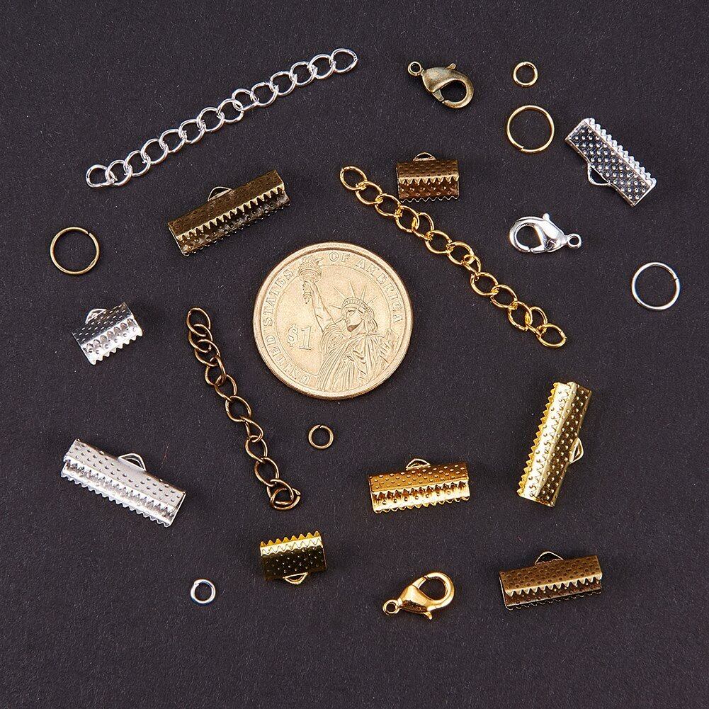 PandaHall アクセサリーパーツ 金具セット 約420入り 紐止め 留め具 エンドパーツ ワニ口 カニカン 丸カン マルカン ジャンプリング リボンエンド 基礎パーツ 金具セット 金具キット パーツ ジュエリー DIY用 混合色