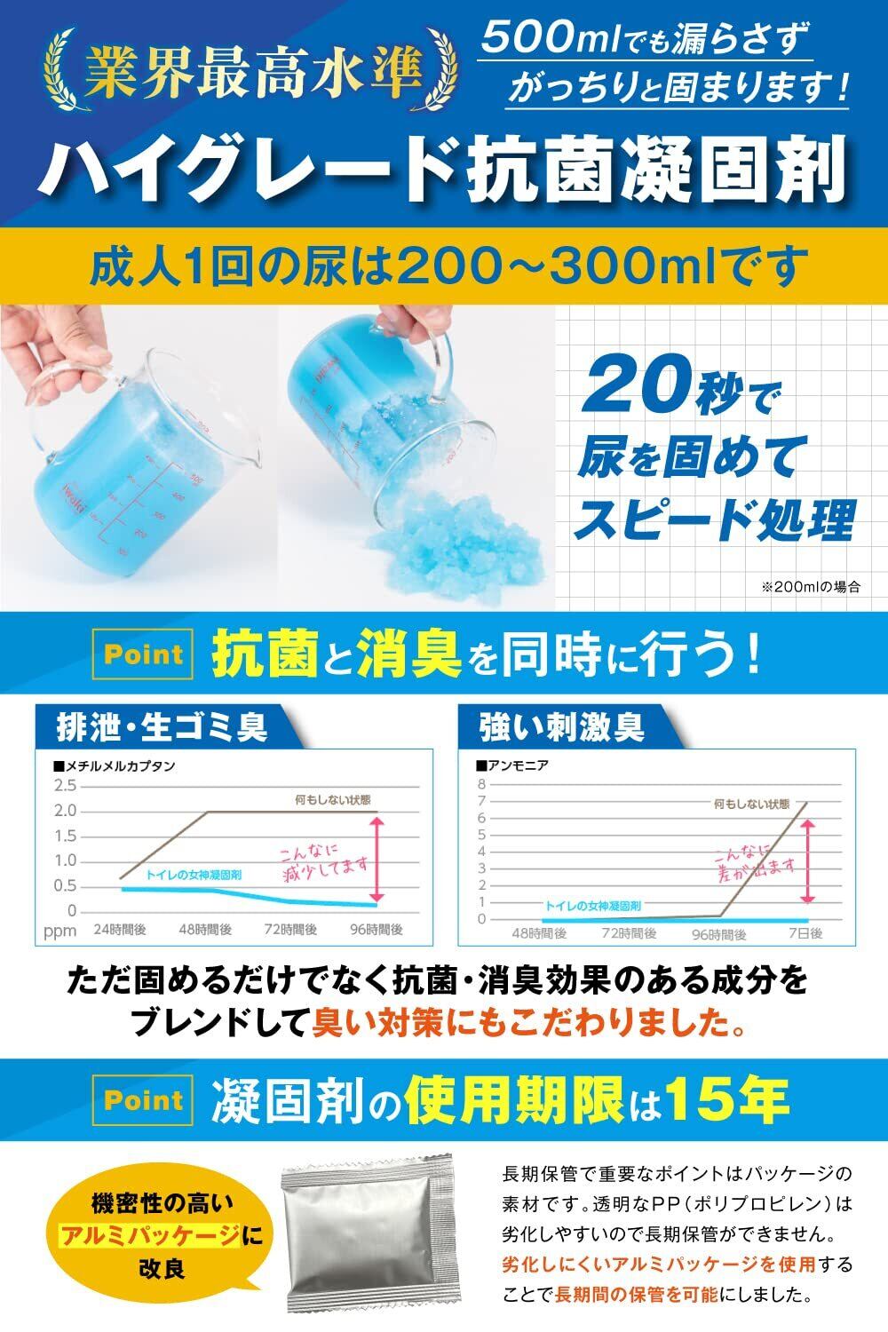 【 「吸水力」「消臭性」を兼ね備えた高性能凝固剤を採用! 】トイレの女神は高性能凝固剤を採用!ハイグレードの凝固剤採用で安心してご使用頂けます! また劣化しにくいアルミ製のパッケージを使用することで長期保管することを可能にしました。