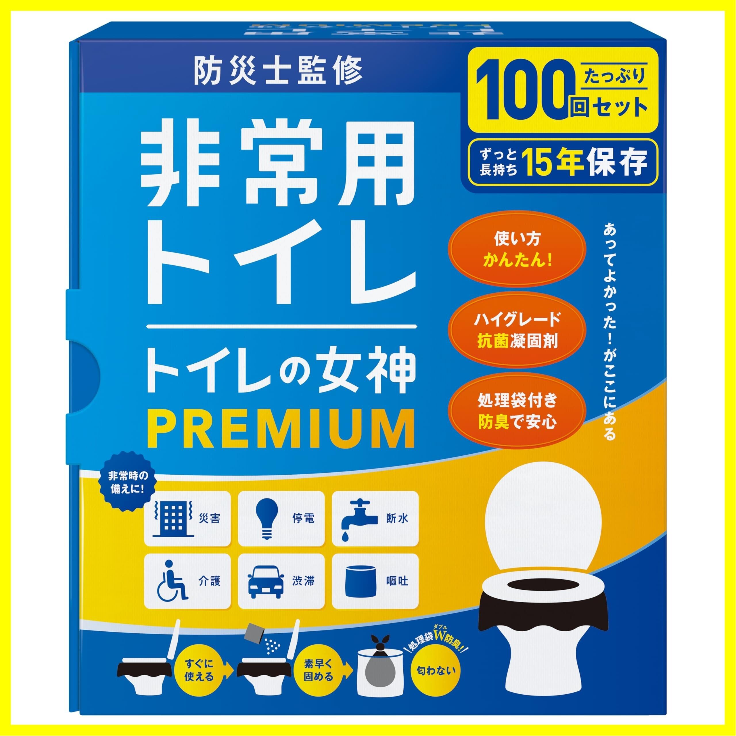 どこでも簡単トイレ トイレの女神PREMIUM 簡易トイレ 【防災士が監修】 15年保存&日本製 携帯/防災/非常用トイレ 防災グッズ 防災ガイドブック付き (100回)