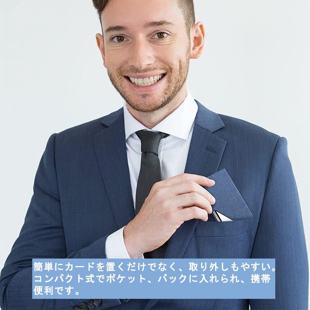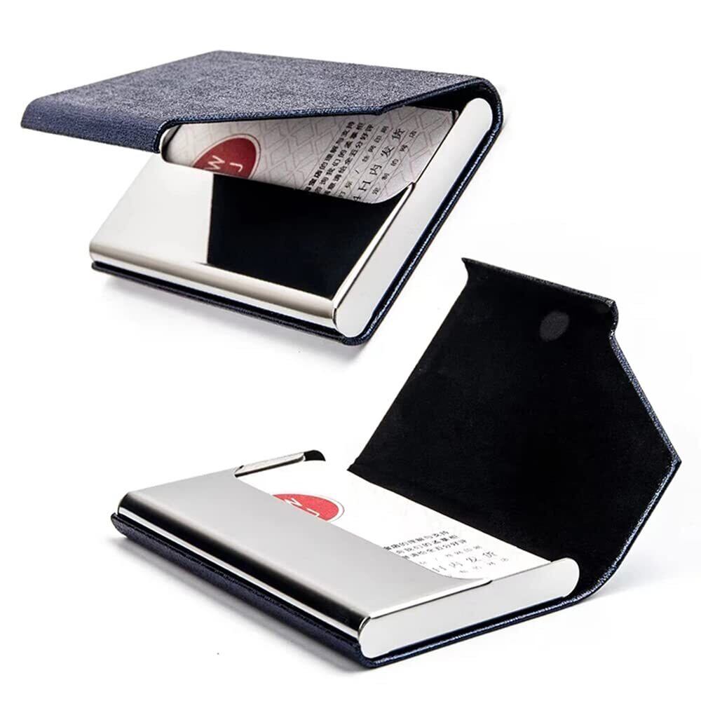 [DFsucces] 名刺入れ 高級名刺ケース ステンレス鋼カードケース 大容量 名刺が折れない 取り出し簡単 1秒開閉 男女兼用 赠り物 (ブルー)